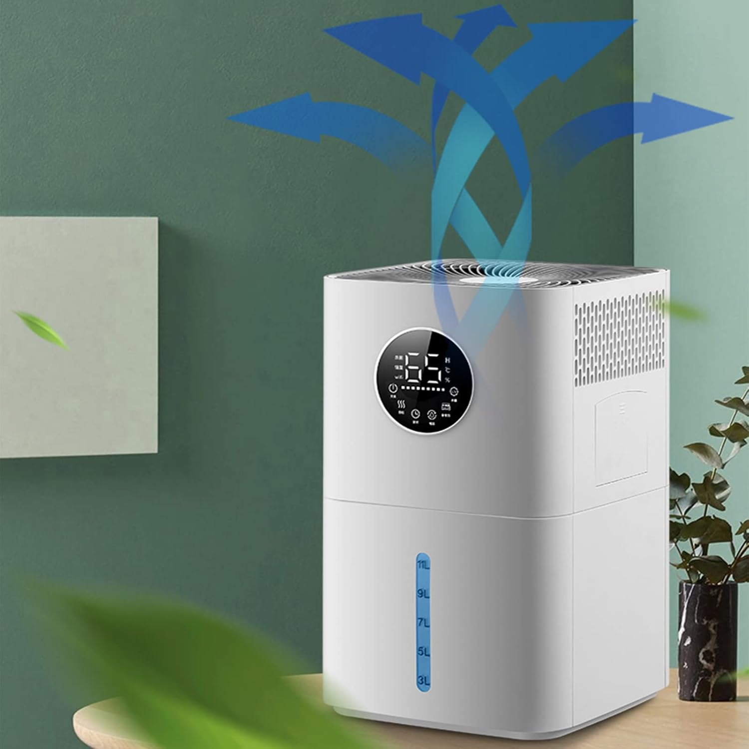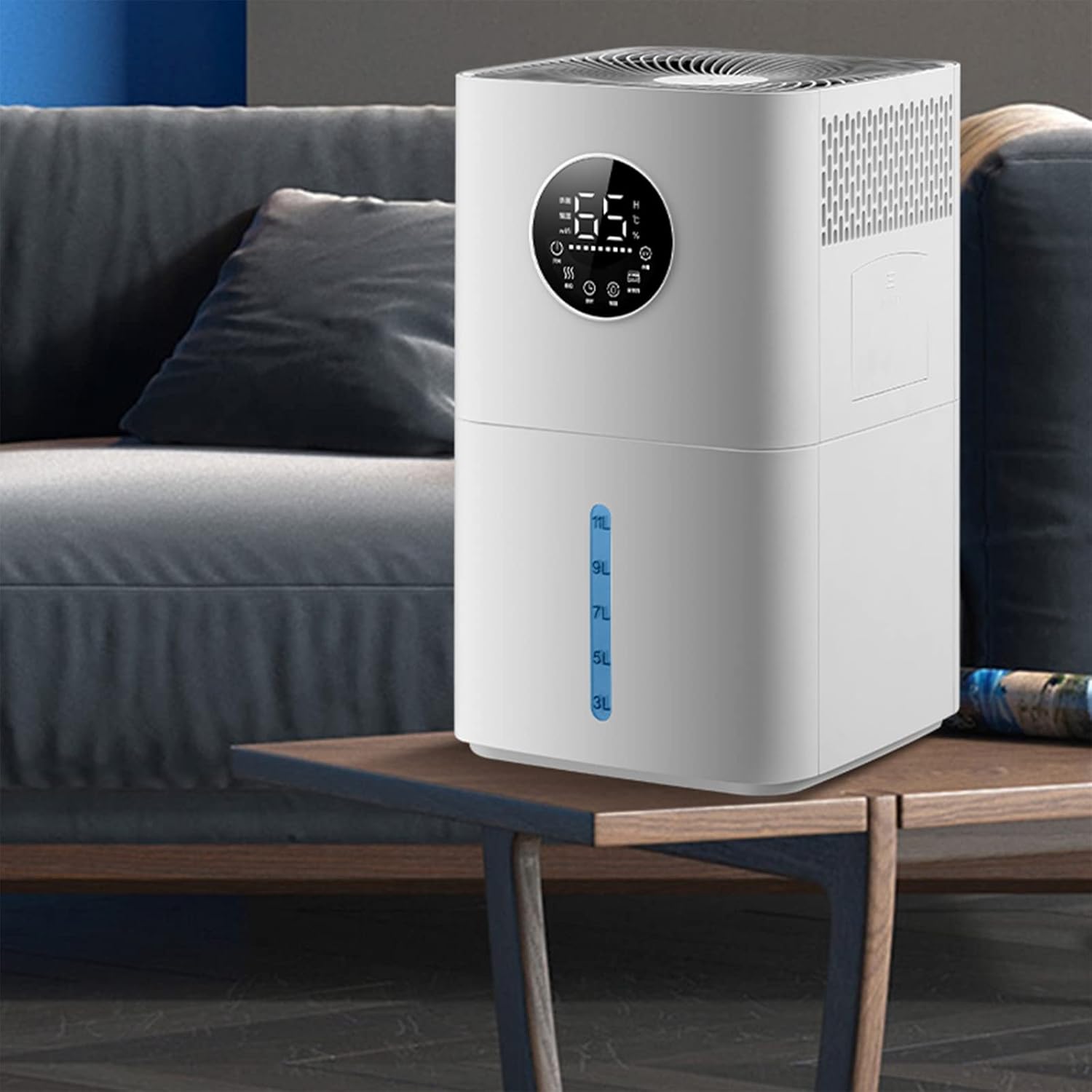 Product features CONSTANT SMART HUMIDITY Built-in humidistat accurately detects the humidity in your room. Auto adjusts to your preset humidity level. LED display will turn off on sleep mode. Low noise level will not disturb your relaxation, learning, working and sleeping. 3 ADJUSTABLE MIST LEVELS 3 mist level settings to switch between output make it easy to adjust the mist speed to your preference and provide free breathing. EASY ACCESS TO REFILLING The top fill design allows you to easily open it to add water to the tank. You don't even need to take out the tank to refill it, makes filling up a breeze. You can also fill the tap water directly. 11l large tank Our large room humidifier is designed for rooms of more than 60 m² and features a 11L tank with a powerful mist output of up to 600 ml/hr. Each tank is designed to last up to 35 hours before refilling. Product Information. Name: Non-fog humidifier Rated voltage: 220V/50Hz. Rated capacity: 11L. Maximum evaporation capacity: 600 ml/h. Product size: 425 x 265 x 265 mm. Applicable area: More than 60 m². Water tank capacity: more than 10 litres. Applicable object: Household Operation mode: Dual-use mechanical remote control. Timing function: More than 8 hours. Water shortage and power failure protection: support. Power supply mode: AC. Packing list 1 x humidifier. 1 x user manual