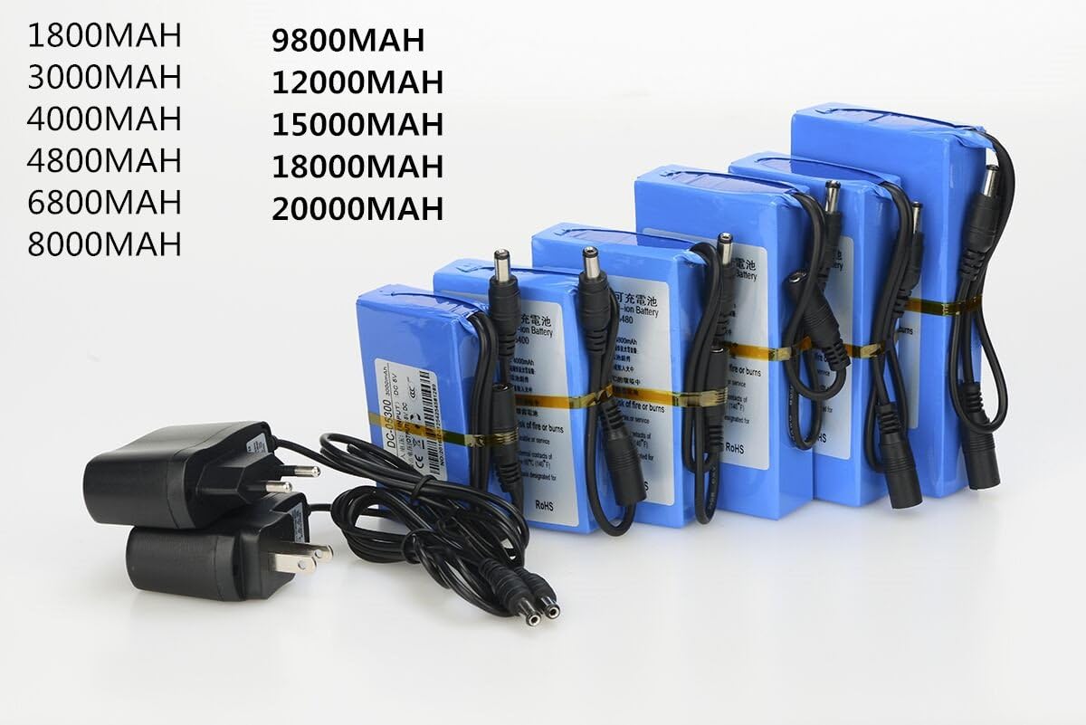 Applications: Wireless cameras, personal processing systems, PDA personal data assistants, Personal communication systems, walkie-talkies, digital cameras, camcorders, Video cameras, Bluetooth devices, CD players, MD players, Portable DVD, MP3 player, smart card, aviation model and so on.Can be used for devices are 12 Volts,within 2 Amps. Capacity: 8000mAh. Built-in ON/OFF switch to save power usage Input voltage: 12.6V Input current:350ma (standard) / 1000ma Output voltage: 12.6-10.80V Output current:1-2A The charger input: 100-240V AC,50Hz/60z 130mA The charger output : DC 12V, 500mA Line interface specification 5.5 * 2.1 MM Product life: Circulation charge and discharge ≥500 times. Package include: 1 X 12V DC 8000mAh Li-ion Battery 1 X AC adapter Battery charging method: 1,Open the battery light "on":red colour. Connect the wall plug,the plug turn green. 2,Start charging,the plug light is red.When the battery have full,the battery light is still red. the plug light is turn GREEN. 3,Normally,it need >8hours charging complete. Warm TIPS: 1,Please charge the battery before use. 2,Once the voltage drop to 8.5 V or more lower,It means no more power,you have to charge it.It is full when voltage reach at 12V. 3,If the battery has no power, please disconnect your product then recharge the battery. If it connect to the product at this time, the indicator light is still on, the battery won't charged. 4,Please note that this battery does not apply to mobile phone charging.