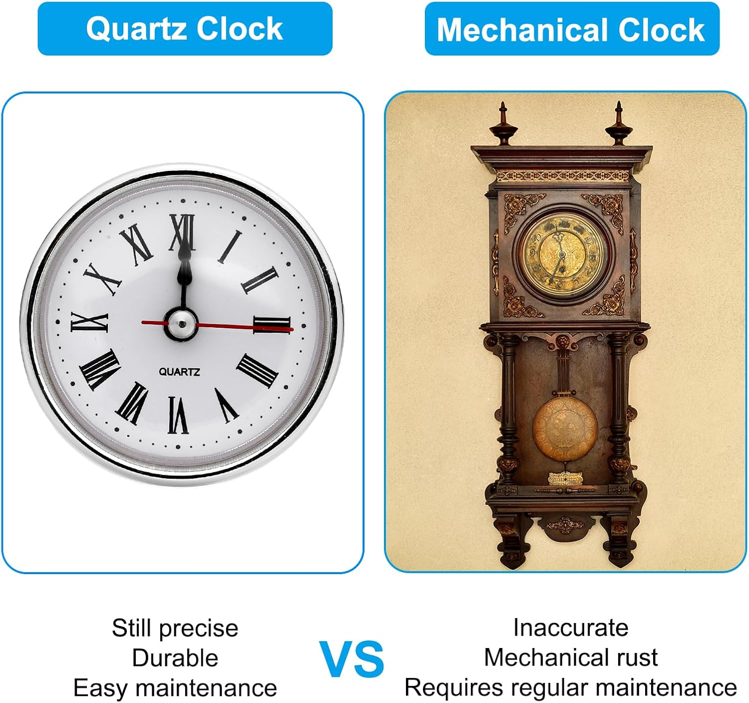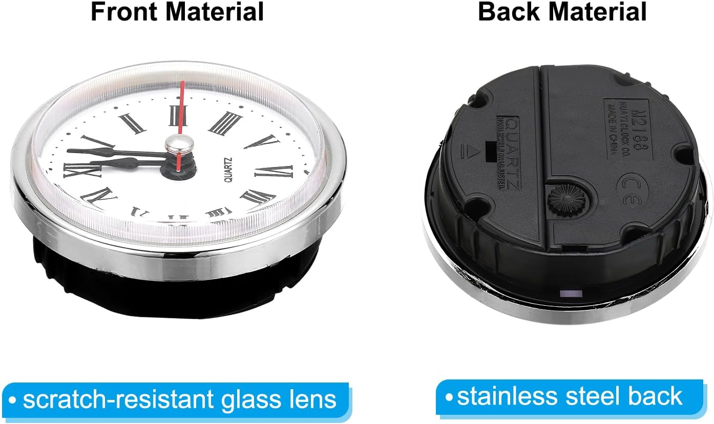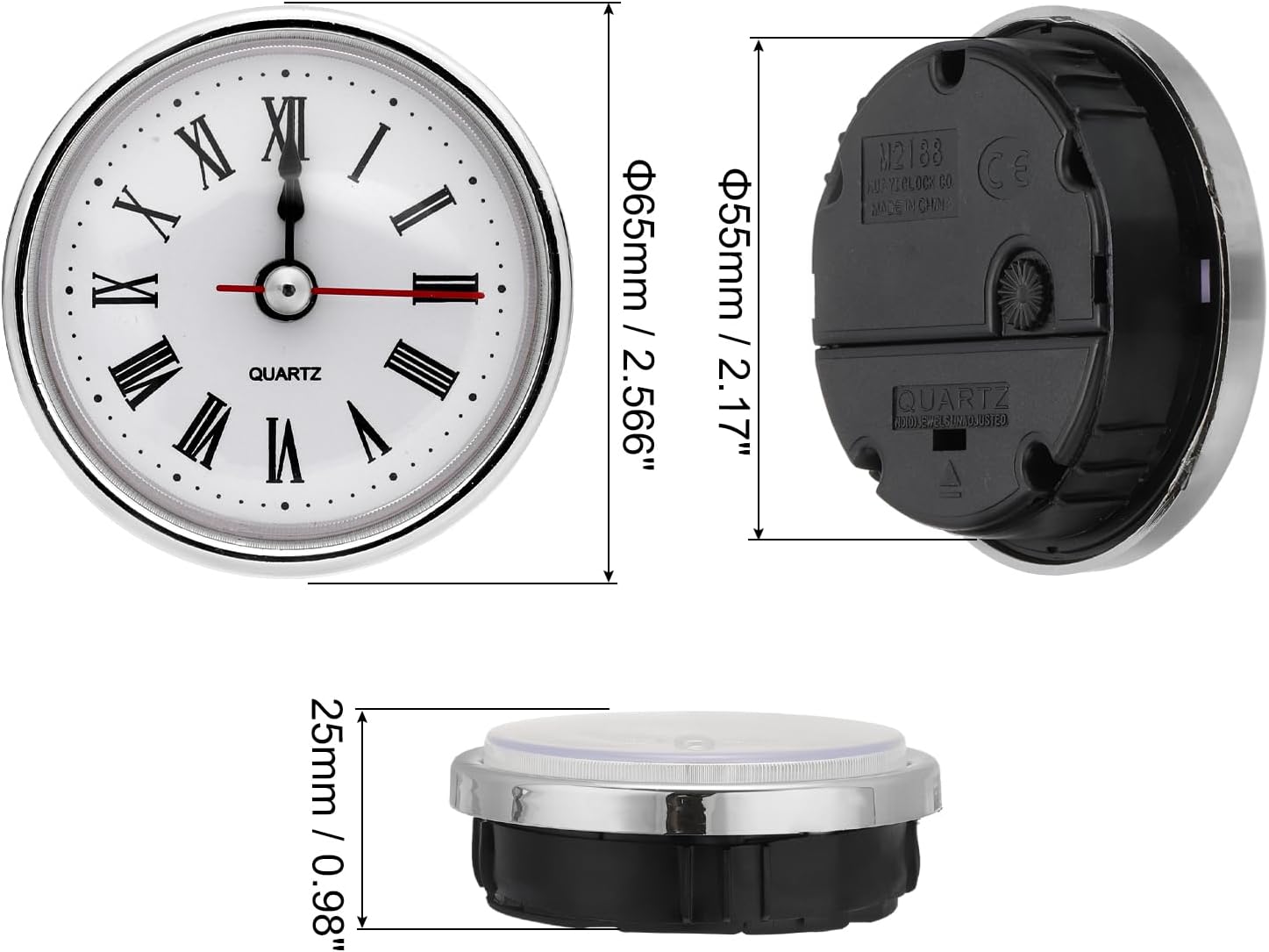 2-1/2 Inch (65mm) Quartz Clock Insert, Miniature Round Quartz Movement Mini Roman Numeral Clock Fit 55mm/2.17 Inch Diameter Hole for Home, Silver Tone