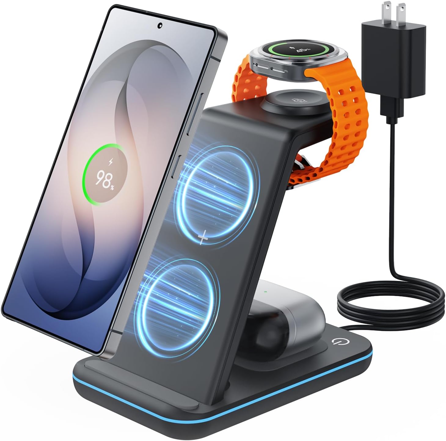 | Additional Features | android wireless charger allowing you to charge your cellphone, earbuds, and smartwatches all at once, samsung charging station allowing you to charge multiple devices efficiently and conveniently, samsung wireless charger stand allows for both horizontal and vertical charging, wireless charger samsung offers a clutter-free charging experience, wireless charging station for samsung leave your charger on overnight worry-free |
