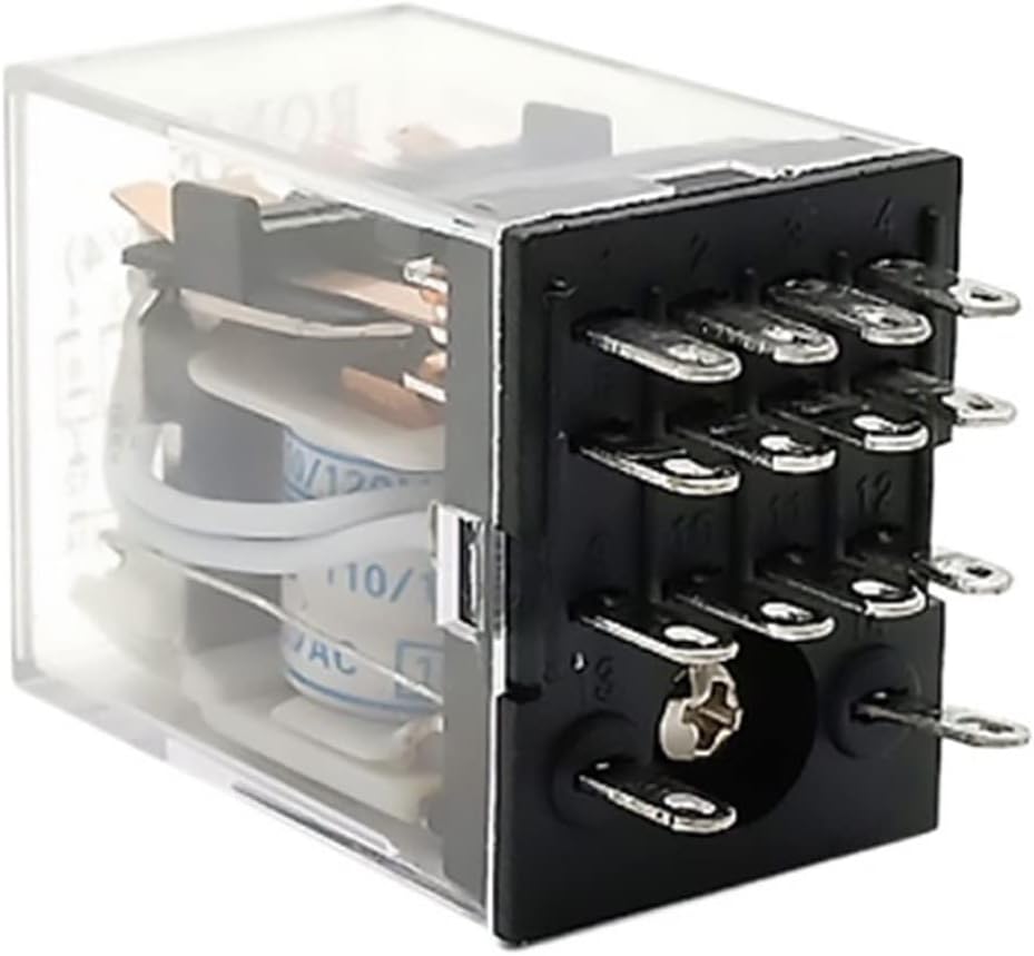 relayElectromechanical RelaysNote: This link is only for relay If you want to buy relay socket base please buy base in addition.Specifications:Product Name:Power RelayModel No.:MY4NJ HH54PAction Type: DPDTCoil Voltage: 110V/220VAC 12V/24VDCContact Capacity:3A 240VAC3A 28VDCPin Quantity:8PinsMounting Rail Type: 35mm DIN RailMaterial(External): Plastic MetalPackage Content:5x Power Relay