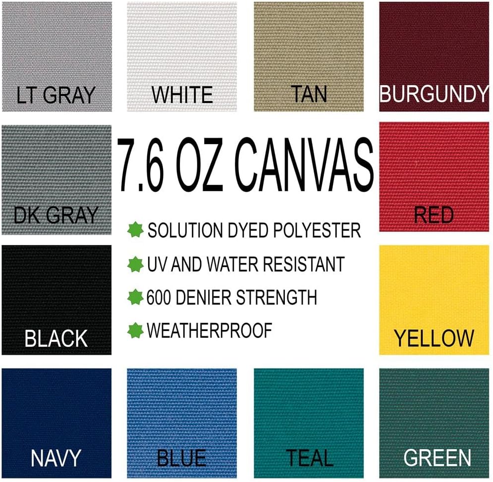This styled to fit boat cover is designed and sewn on-demand in the USA for the 2002 2003 2004 2005 RINKER 250 FIESTA VEE with I/O engine. Our canvas shields against dust, rain, snow, dirt, leaves, and other debris. While the cover is not custom tailored, it is highly fitted to the boat profile and accessories. If your boat configuration varies from what is detailed in this listing, please reach out to confirm fitment before purchase as you may need a different cover for your situation. Cover will fit firmly. Strong and breathable 7.6oz solution dyed polyester canvas is water repellent and will provide all year round indoor and outdoor protection for your boat. Water repellency ensures year-round all-weather protection. Fully elastic hemline for a contoured and tight fit. Nylon loops are sewn along the hem for use with trailering tie-downs or optional mooring weights. Note: extra loops allow for tiedown customization for your unique boat, trailer, and accessories. Includes: made to order boat cover in your color choice and 1 set of tie-down travel straps unless otherwise noted. Use of support poles is encouraged (required for outdoor use). Listing Abbreviations: SC = Side Console, CC = Center Console, SWPF = Swim Platform, TM = Trolling Motor, Att = Attached, O/B = Outboard, I/O = Inboard Outboard (or just Inboard), Pform = Platform, Tourn = Tournament.Our canvas cover is measured with allowances to fit boats with rails up to 24” and no anchor roller. If boat is equipped with a bow pulpit or anchor davit, a larger cover may be needed. This cover fits boats with standard windshields. Important note: This cover includes No swim platform/swim step/ladder coverage. If coverage is needed, a larger size cover is required..