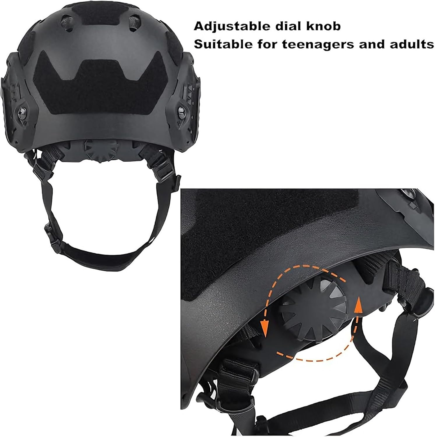 Still searching for a tactical helmet that’s lightweight yet tough? Still frustrated by ill-fitting helmets that feel uncomfortable after long wear? Still craving a multi-functional gear that’s compatible with Bluetooth and NVG?This lightweight tactical helmet is crafted from a durable blend of ABS engineering plastic, foam, and nylon. It features built-in padding for exceptional comfort, irregular hook-and-loop strips on the surface for attaching various headgear accessories, and an upgraded robust rail system paired with an alloy NVG mounting base—perfect for installing NVG or cameras. The 360° rotating knob at the back fits head circumferences from 52cm to 60cm (20.5–23.5 inches), and the adjustable straps ensure a customized, snug fit. The silicone earcups come with waterproof and dustproof rubber plugs, and support Bluetooth connection, allowing you to enjoy hands-free calls and music on the go. Ideal for outdoor tactical games, it also makes a fantastic gift for sports enthusiasts!Product Contents: Helmet *1Headset *1Stop settling for helmets that hold you back. Choose the one that’s built for your pain points, your mission, and your trust.We have a dedicated customer service and technical team to respond to your product inquiries and usage questions at any time, ensuring your equipment is always in optimal condition.