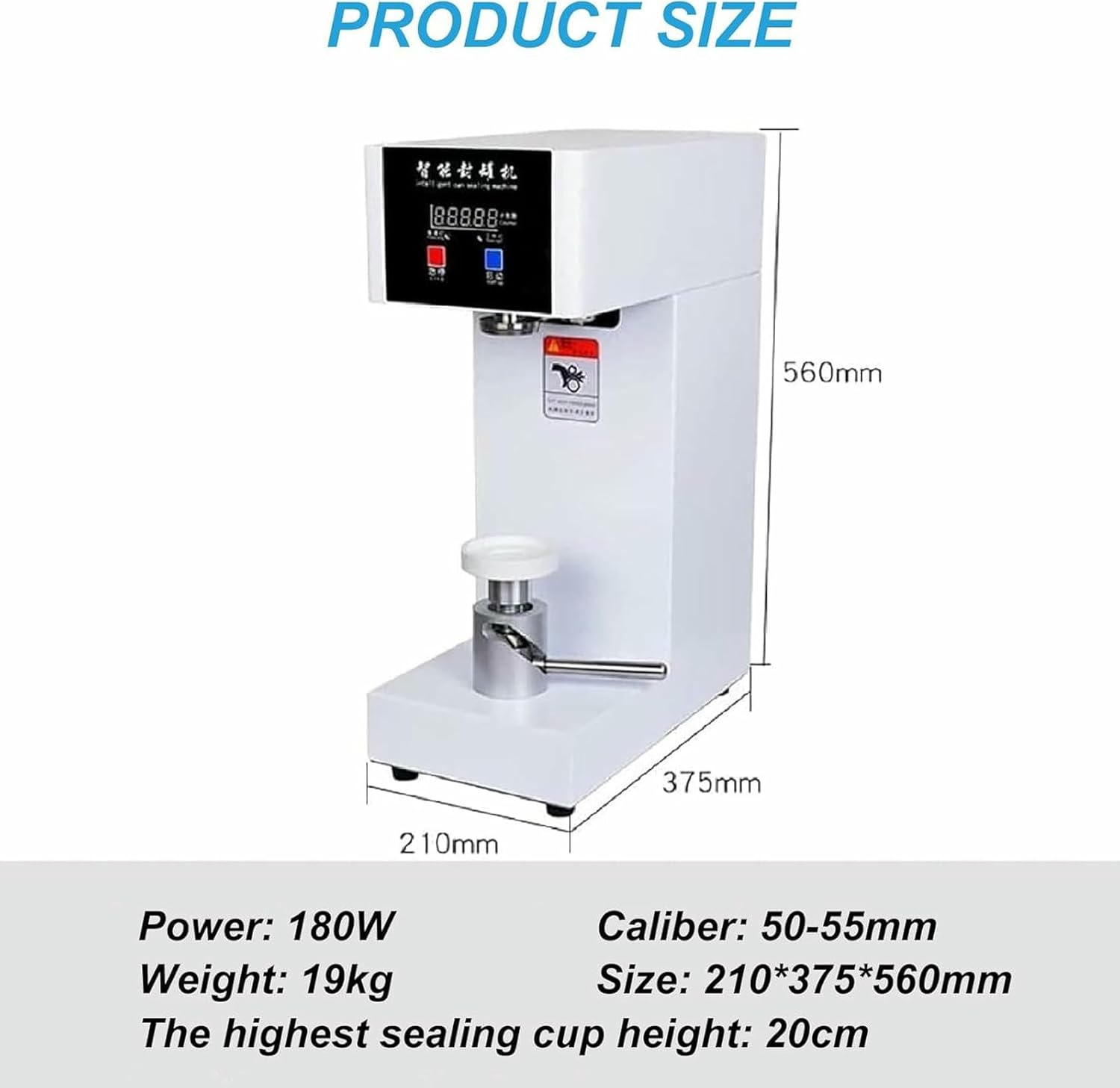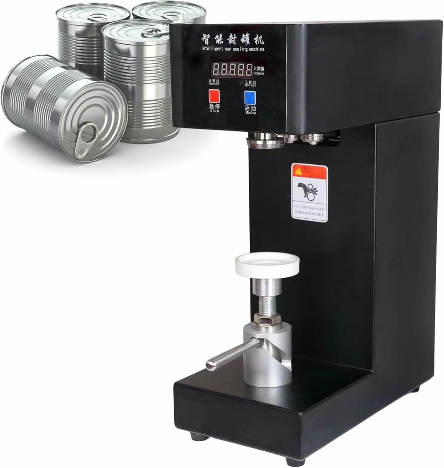 The cans sealant has a great sealing capacity and allows sealing bottles in a hermetic and fast way.It is ideal to use in homes, bars, coffee shops, restaurants, drink stores, fast food restaurants, etc.This sealant of cans for caliber bottles 5.5 cm/2.2 inches.The maximum seal height is 20 cm.The cans sealant has an intelligent control window that facilitates its use.Its stainless steel housing makes it very solid and resistant.Mode of use:1. Place the bottles or cans on the deep support for cans.2. Turn the lever to lift the can and push it up.3. Press "Start", wait for the lever to be completely seal and turn down.Specs:Machine material: stainless steelColor: White/BlackScreen type: LEDPower supply: with electric cableVoltage: 110 V/220 VPower: 180 wCans sealing diameter: 5.5 cm/2.17 inchesMaximum sealing height: 20 cm/7.9 inchesProduct size: 21 x 41 x 60 cm/8.3 x 16 x 23.6 inchesPackage Included:Cans sealant kit * 1