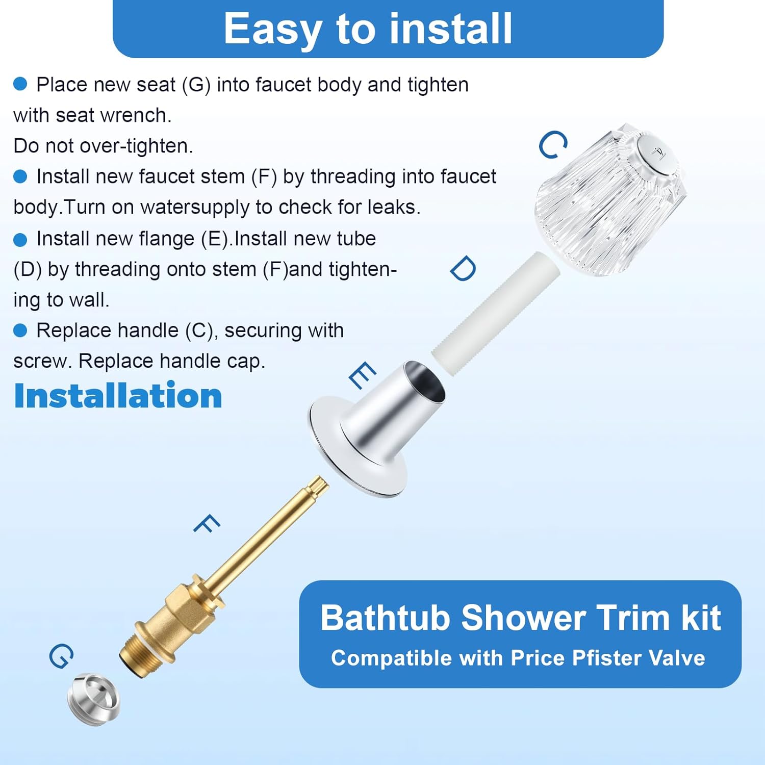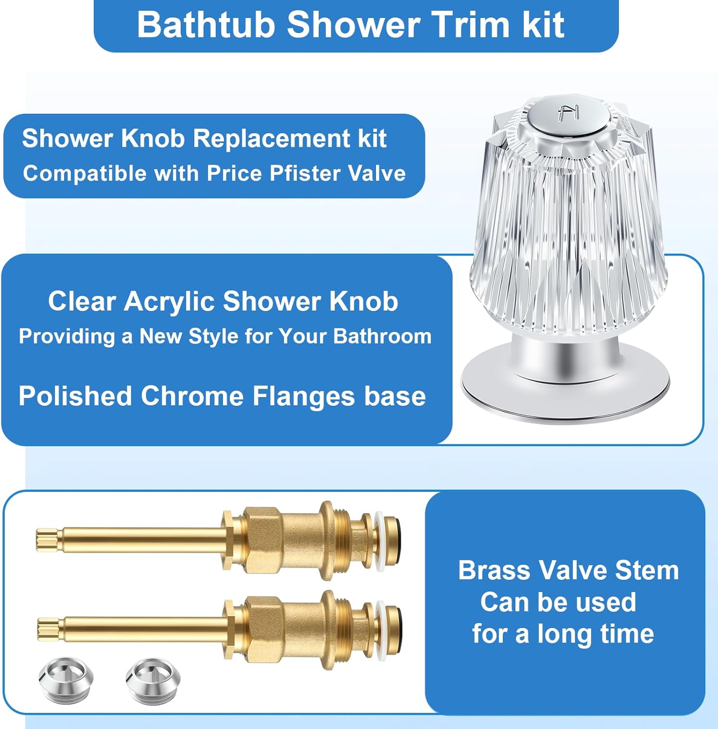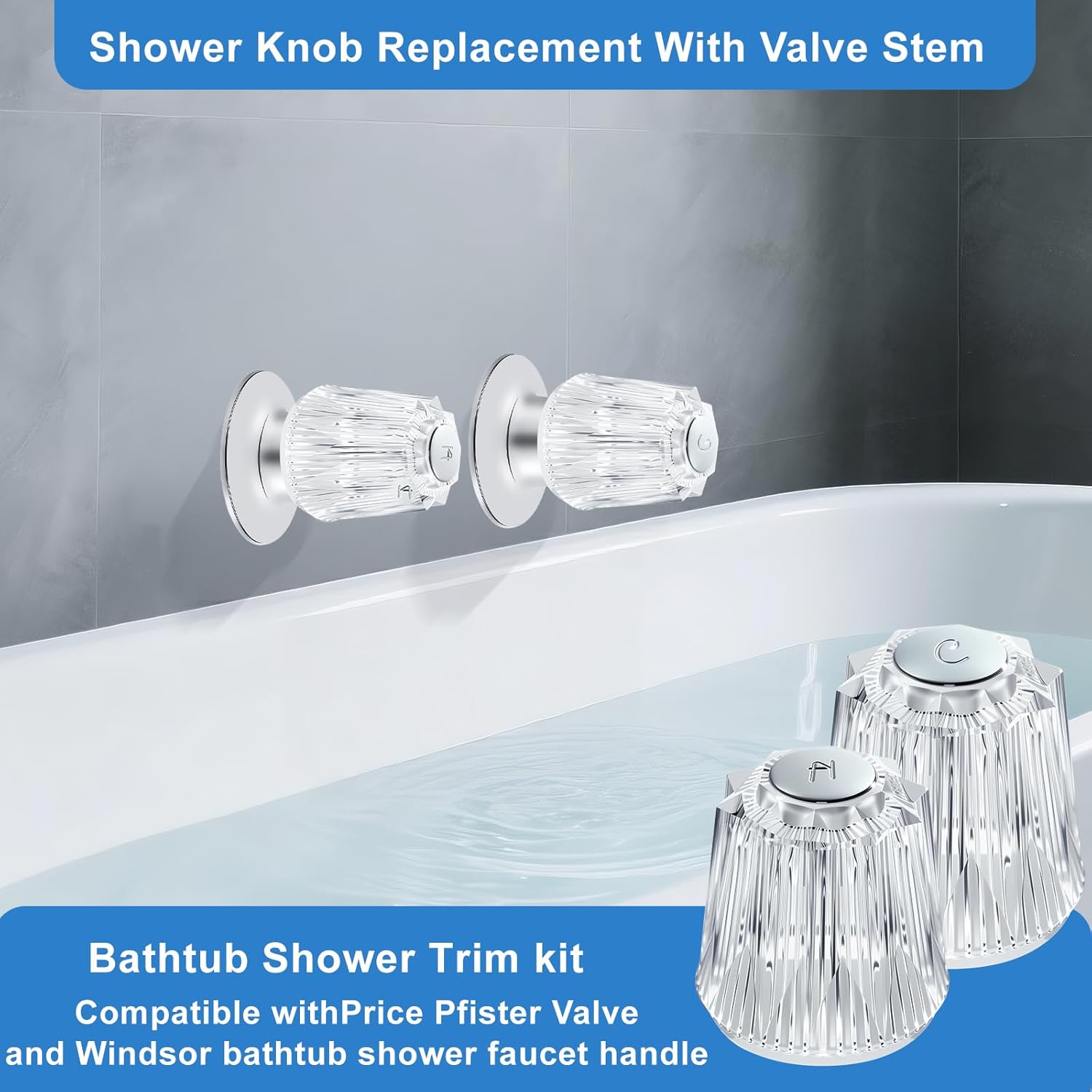 Bathtub and Shower Trim kitCompatible with Price Pfister for Windsor Shower Faucet Package Includes:2 x Hot and Cold Shower Knob2 x Metal Flange Base2 x Valve Stem2 x Stem Parts Material: Brass, Metal, Plastic
