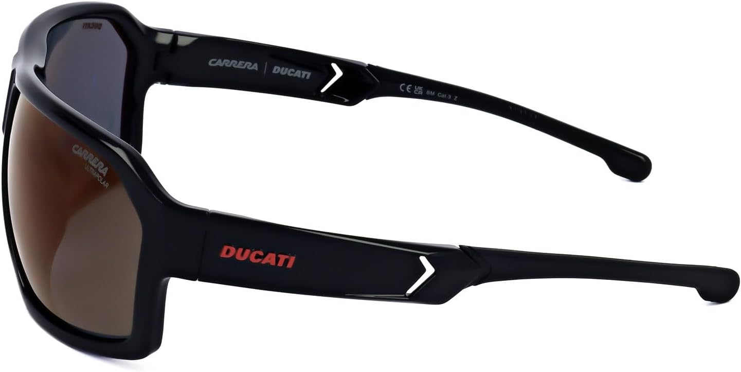 Carrera Sunglasses. Series number: CARRERA DUCATI 020/S. Color code: 0807/H4. Shape: Wrap. Lens Width: 66 mm. Lens Bridge: 13 mm. Arm Length: 130 mm. 100% UV protection. Polarized. Frame Material: Plastic. Frame Color: Black. Lenses Type: Polarized Red Mirror. Rim Style: Full-Rim. UPC/EAN code: 716736797090. Carrera Polarized Red Mirror Wrap Men's Sunglasses CARRERA DUCATI 020/S 0807/H4 66. Manufacturer's Packaging Included. Packaging Size And Color May Vary.