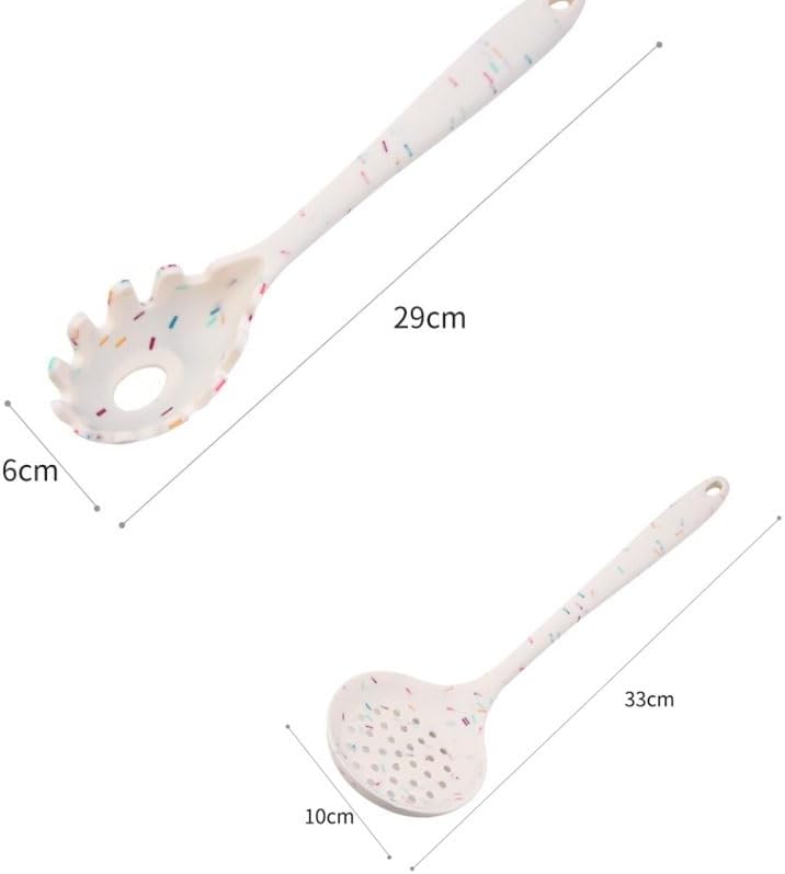 : Spoon and Spatula SetMaterial: siliconeSize: As shownColor: As shownFunctions: Cooking, baking.The set includes: Spatula, spatula, soup spoon, etc.Shoulder bag: Shovel and spoon set * 1 set (excluding display items)Attention:1. Please allow 1-2cm error due to manual measurement. Thank you.2. The actual color of the product may be slightly different from the image shown. Please refer to the actual product.Investing in a handy set of spatulas can significantly enhance the smoothness and enjoyment of cooking.