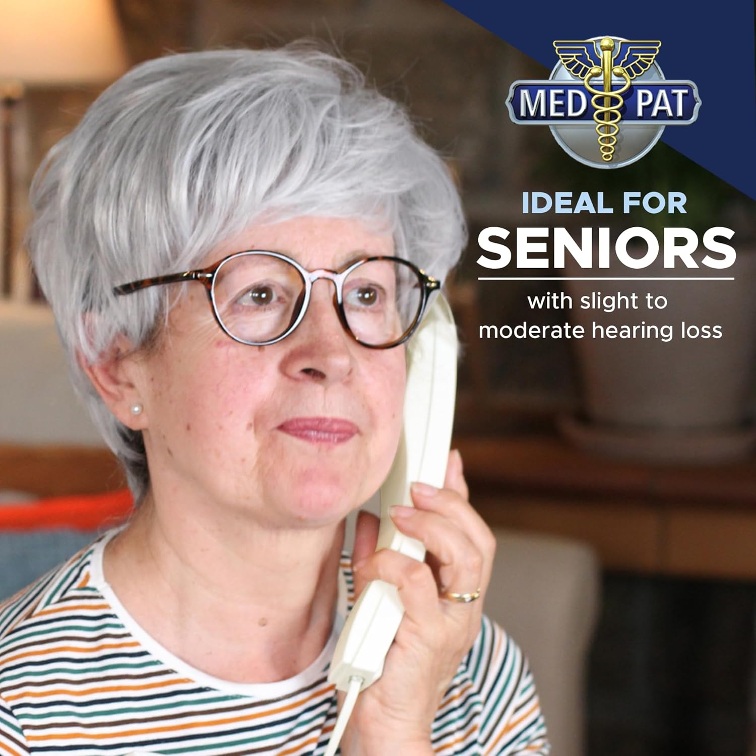 Elevate your communication experience with the Med-Pat D800C, a stylish and contemporary single-line analog deskset telephone designed for diverse settings, from hotels and motels to homes. Its sleek design and user-friendly interface make it a seamless addition to any space. The advanced audio features, including built-in CLEARING AID circuitry for individuals with high-frequency hearing loss and adjustable volume control, ensure crystal-clear voice communications tailored to personal preferences. The innovative customizable faceplate adds a personalized touch to each room, conveying specific instructions or special notes. The sturdy design, featuring a heavy-duty, non-slip base, guarantees long-lasting use, with durability against accidental drops or pulls. This telephone goes beyond aesthetics, offering advanced technical features like hearing aid compatibility, a user-friendly dial pad, and wall-mounting capability, making it a versatile and reliable choice for communication in any setting. Invest in sophistication, functionality, and lasting reliability with the Med-Pat D800C.