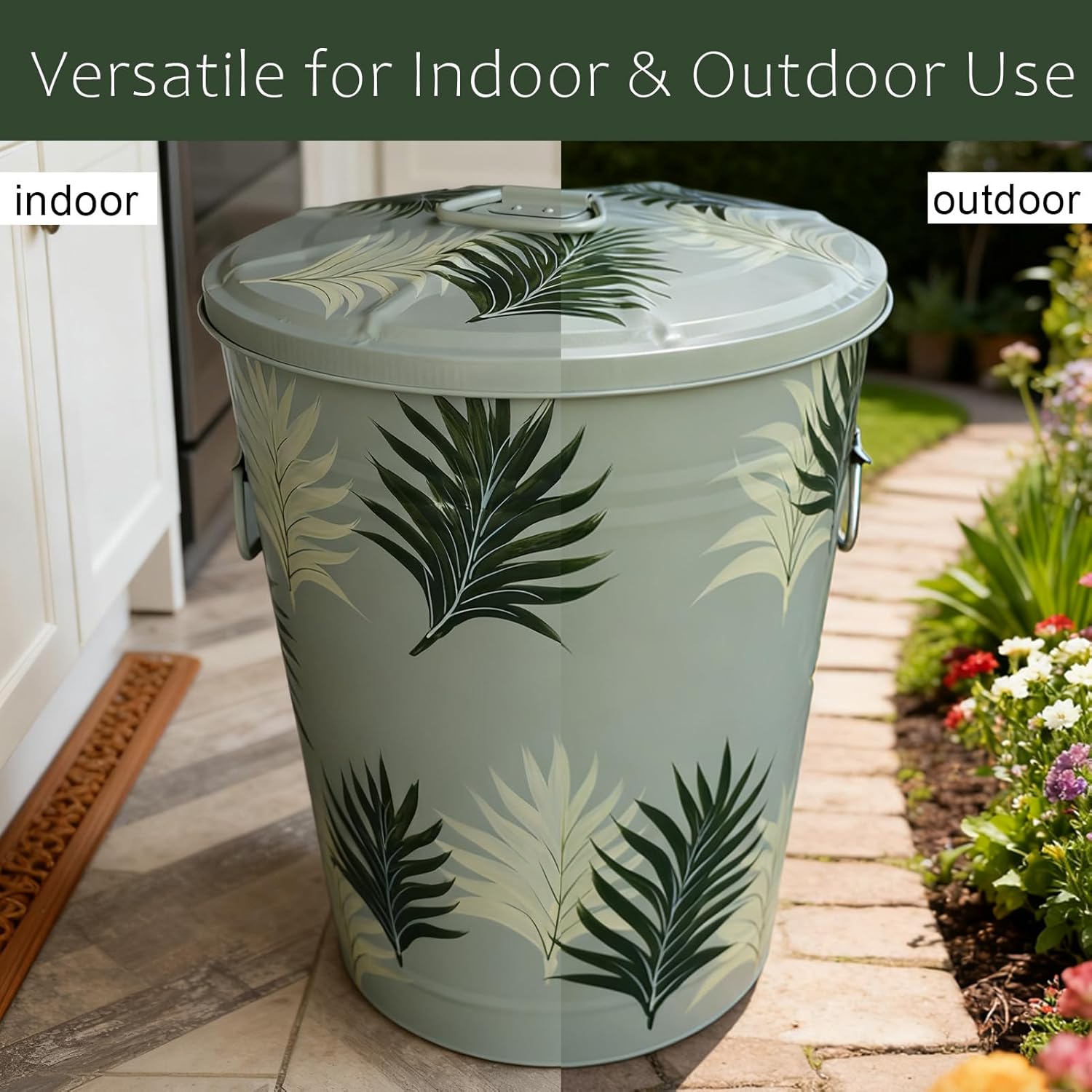 | Additional Features | Carrying Handle, Decorative Palm Leaf Pattern, Indoor/Outdoor Use, Removable Lid |