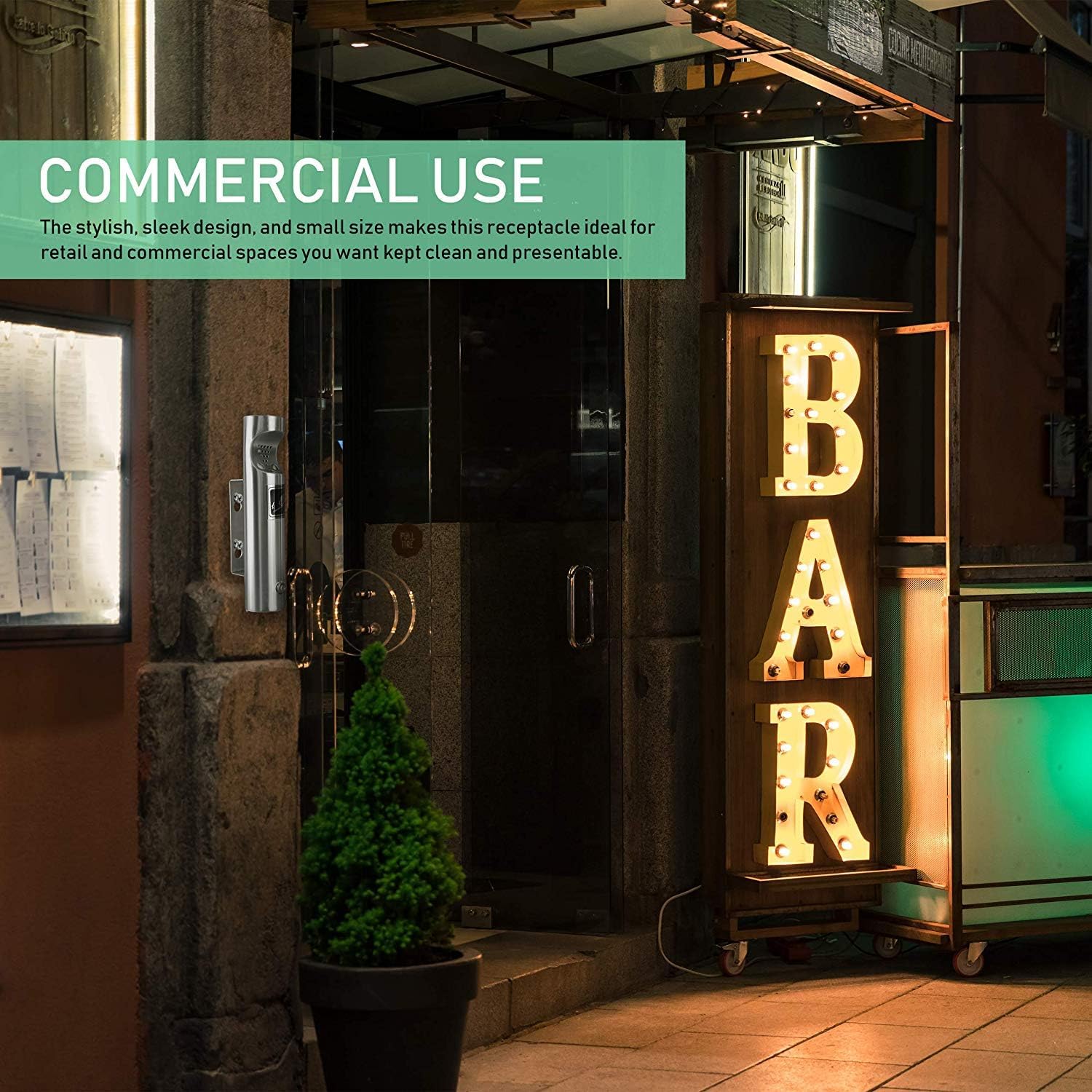Maintain a clean, organized, and professional environment with the Elitra Wall Mounted Cigarette Butt Receptacle in sleek silver. Designed with property managers, landlords, businesses, and homeowners in mind, this stainless steel receptacle offers a discreet, functional solution for smoking areas. Unlike bulky ashtrays that sit atop trash cans, this slim 11.5 x 2.5 in. wall-mounted cigarette disposal unit provides a compact and space-saving option that keeps smoking areas tidy and odor-controlled. The modern stainless steel finish blends seamlessly with outdoor or indoor décor, making it suitable for commercial buildings, hotels, offices, and even balconies. By concealing all discarded cigarette butts, this wall ashtray ensures a clean and polished appearance while minimizing lingering odors. Cleanup is simple thanks to the lockable bottom cover—just use the included key, unlock the base, and let gravity handle the disposal. No lifting, shaking, or complicated cleaning steps are required. Installation is also quick and straightforward with the included mounting screws, so you can easily secure it to walls in designated smoking areas. Built from durable stainless steel, this receptacle resists wear, providing a long-lasting and low-maintenance solution for cigarette waste management.