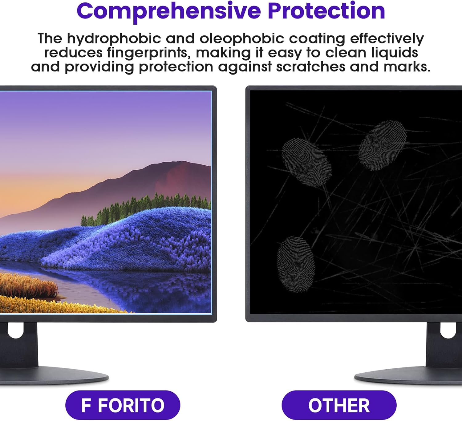 F FORITO 27 Inch Anti Blue Light Matte Monitor Screen Protector For 27" Diagonal LED PC Monitor, Reduce Eyes Strain and Anti Glare Computer Screen Cover for Widescreen Monitor Experience superior protection with the following features: ✔Anti-glare ✔Anti-reflection ✔Anti-static ✔Anti-scratch ✔Reduces eye fatigue for comfortable viewing Tips: 1.For optimal performance, it is recommended to install this screen protector in a clean, dust-free environment. 2.Before installation, please take the time to carefully read and follow the instructions provided on both tabs of the front and back protective layers. 3.Following these steps will ensure a smooth and successful installation experience.