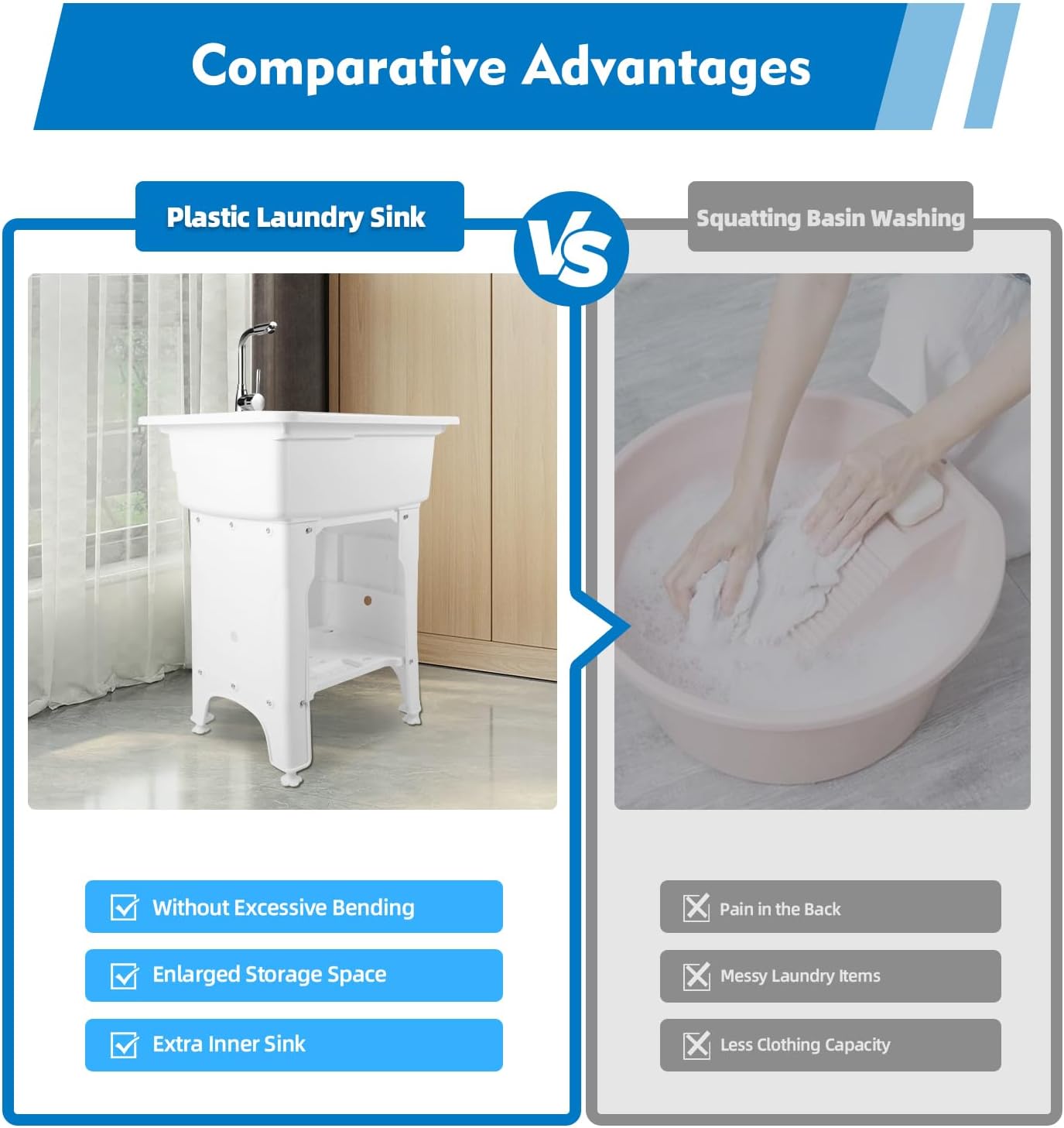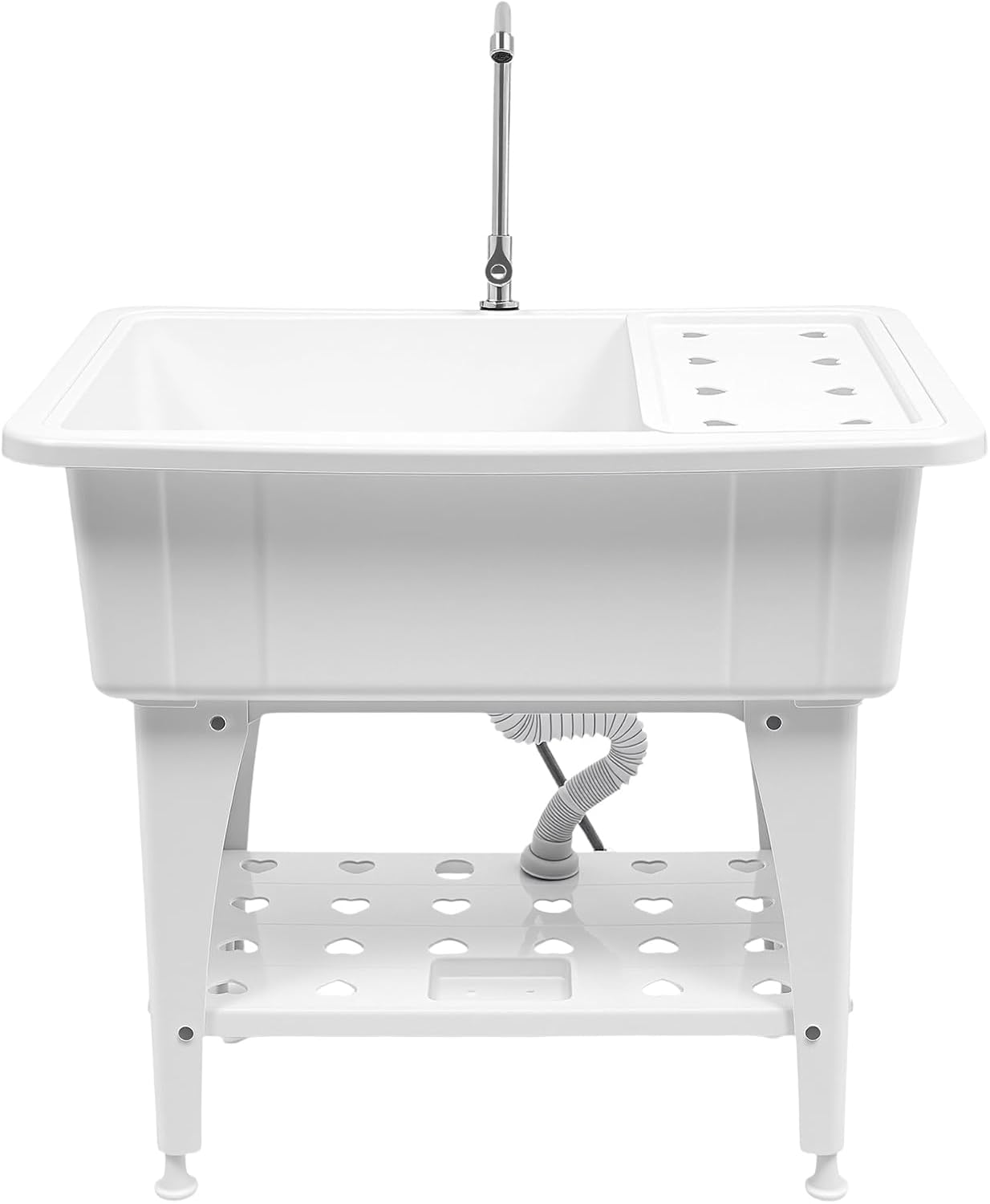 | Included Components | 1* Freestanding Plastic Laundry Sink 1* Washboard 1* Hot and Cold Faucet 2* Water Pipes 2* Valves 1* Drain Pipe 4* Feet 1* English Manual All Accessories for Installation |