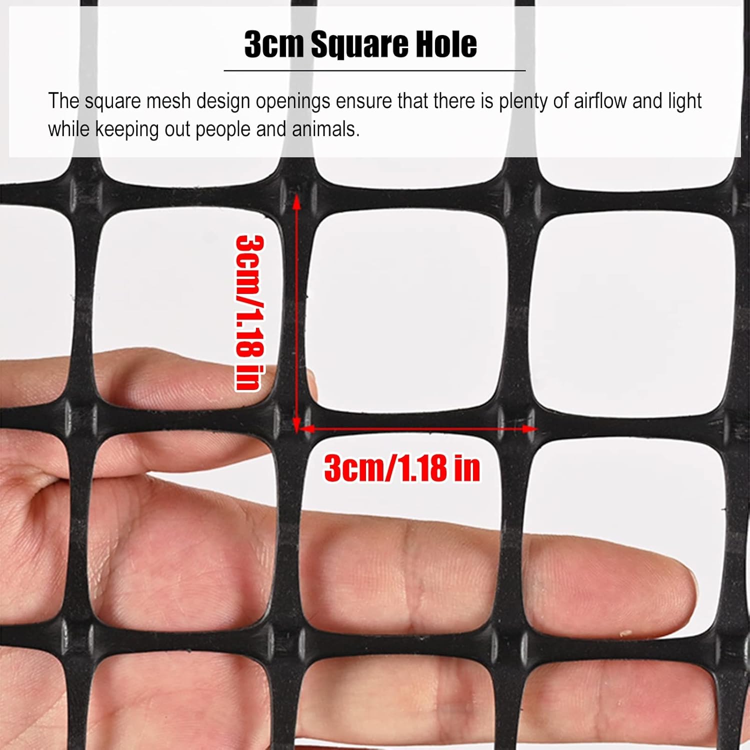 Protect your garden with our durable mesh safety netting designed to keep birds, deer, rabbits, and other pests at bay. This versatile netting offers a reliable solution for safeguarding your plants, making it perfect for use in orchards, flower beds, and vegetable gardens. Constructed from high-quality plastic, our netting features a mesh hole size of 3x3cm (1.18x1.18 inches) and comes in a sleek black color that blends seamlessly into your outdoor environment. You can customize the size to suit your specific needs, ensuring maximum protection for your garden space. Key Features: - Ideal for a variety of applications including gardens, fences, and orchards, providing a practical defense against common garden intruders. - Designed to be snag-resistant, preventing unwanted entanglements with branches and other obstacles. - Flexible material can be easily cut into any shape or size, making it simple to create tailored solutions for your fencing needs. - Perfect for temporary barriers during construction or landscaping projects, offering convenience and versatility.