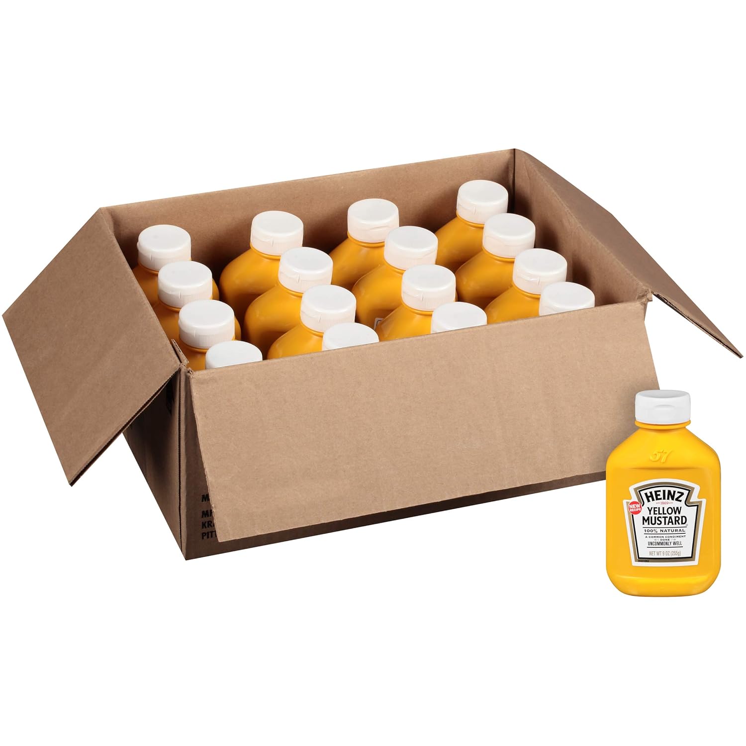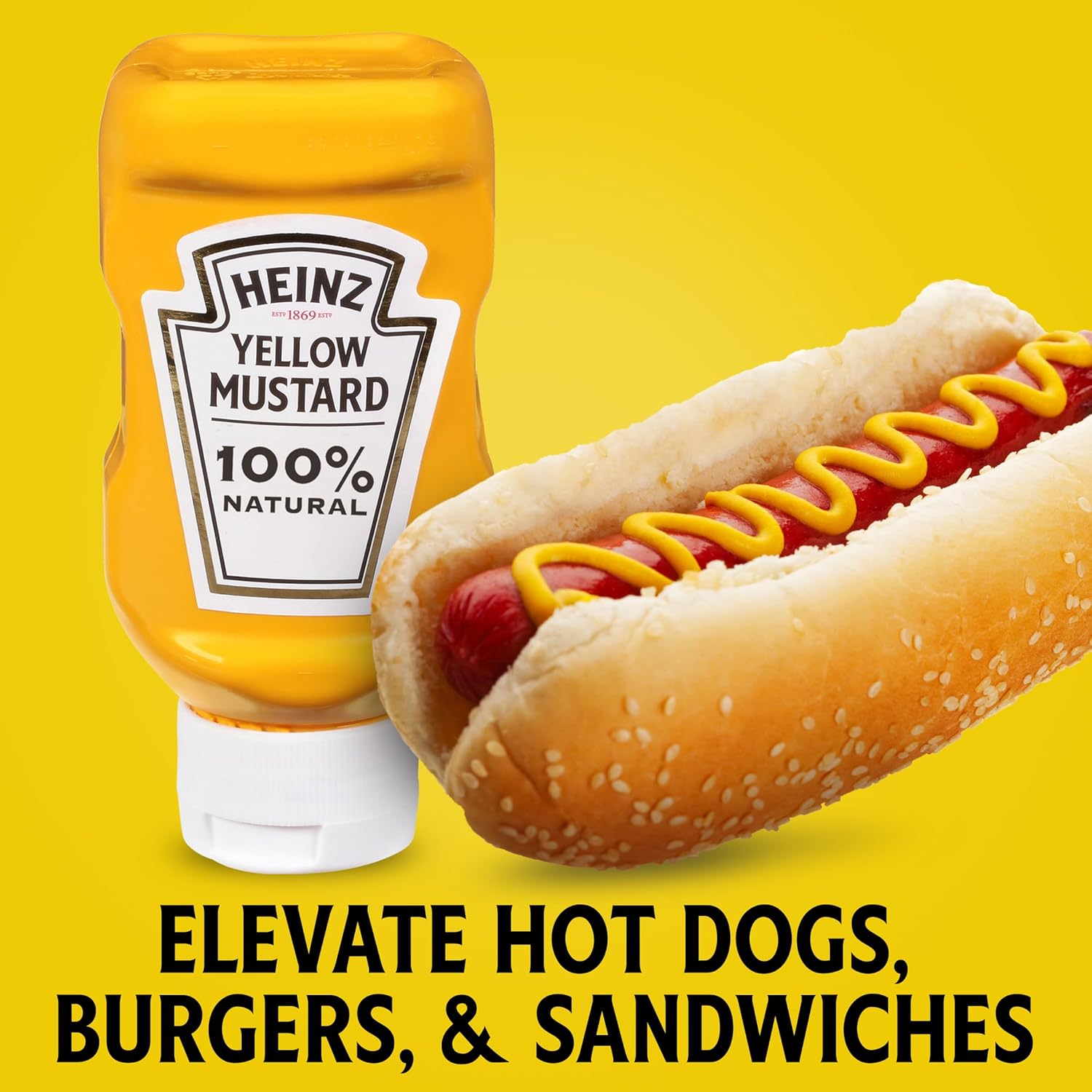 Heinz Yellow Mustard offers the trusted, flavorful taste of classic Heinz Mustard that complements a wide range of foods. Stock up with this 16 ct. package and try our yellow mustard on burgers, hot dogs or sub sandwiches. Made with 100% natural ingredients including #1 grade mustard seeds, this natural mustard delivers the classic yellow mustard taste you know and love. This delicious prepared yellow mustard will elevate any meal you add it to, and will surely be a hit with the entire family. The 13-ounce Heinz Yellow Mustard, Inverted, No Seal to Peel bottle makes it easy and safe to use. Whatever the occasion, Heinz Yellow Mustard is something the whole family will love.