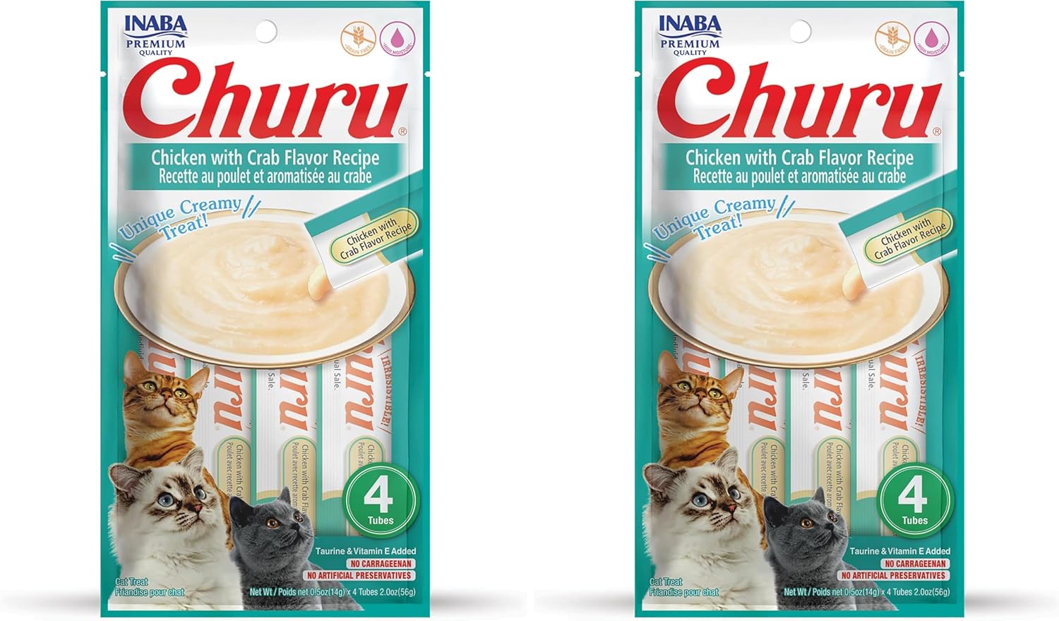 INABA Churu Cat Treats, Grain-Free, Lickable, Squeezable Creamy Purée Cat Treat/Topper with Vitamin E & Taurine, 0.5 Ounces Each Tube, 48 Tubes (4 per Pack), Chicken Recipe