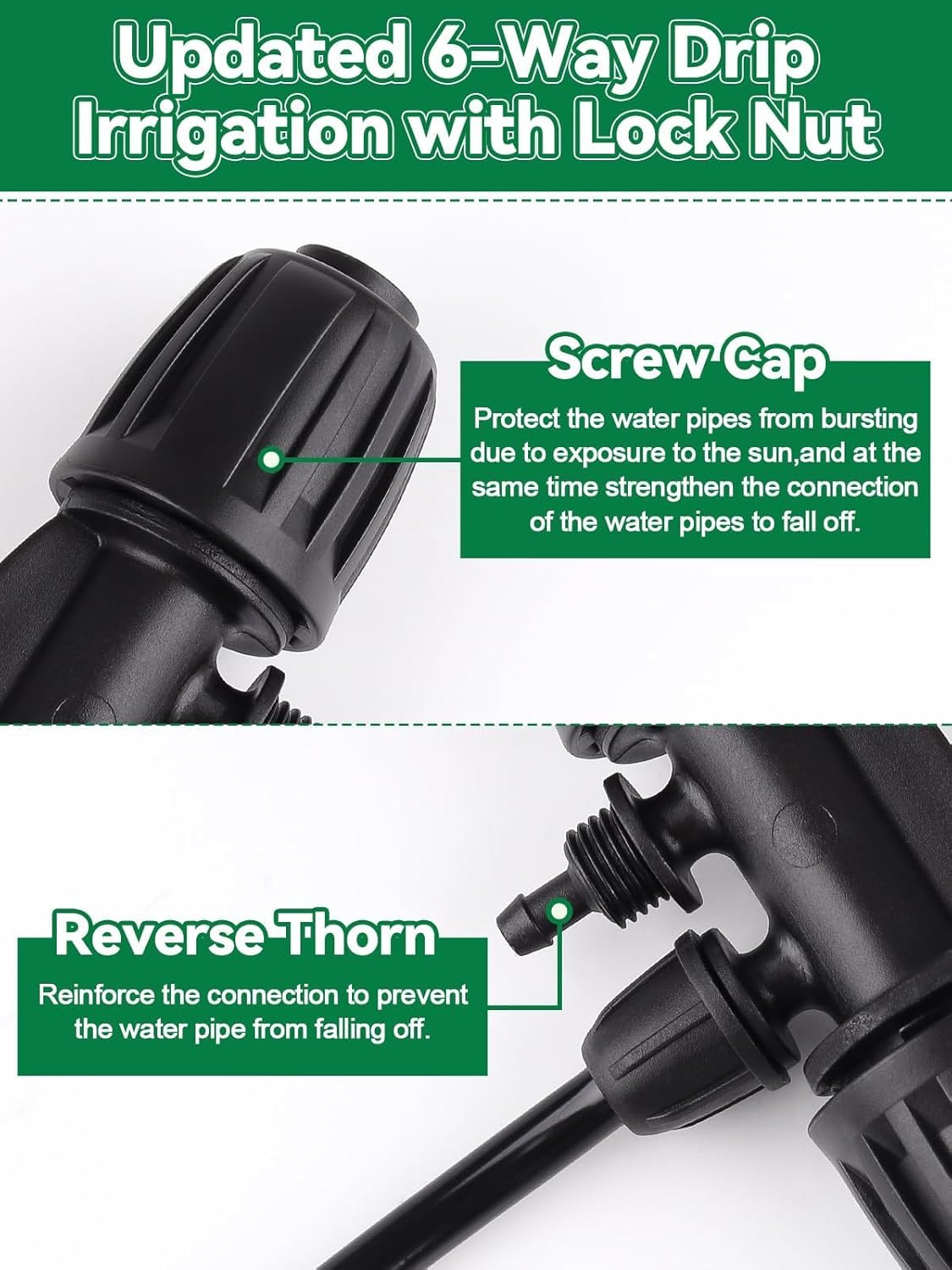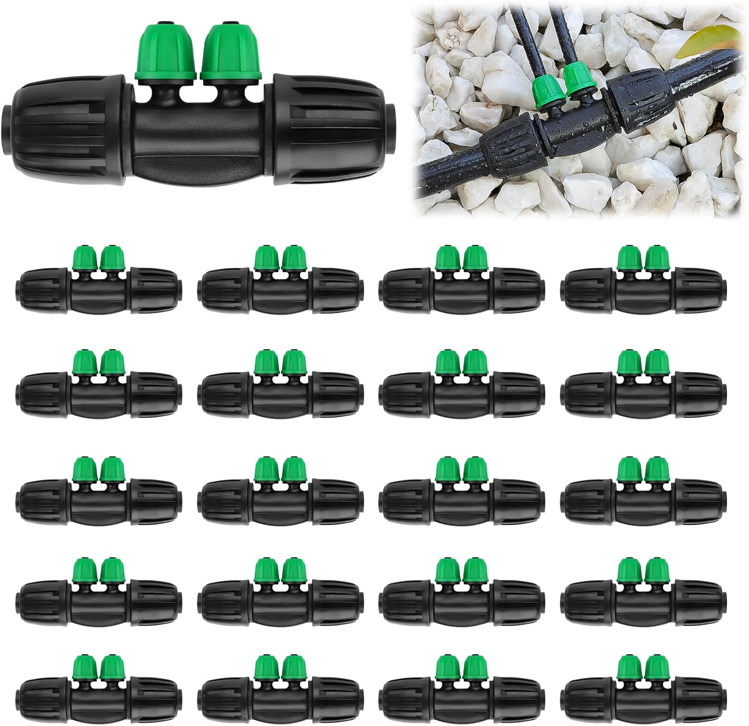 Feature: Our 4-way hose splitter are numerous enough for the daily use and replacement of your garden irrigation system, easy to dismantle and clean. Many different combinations of use, 4-way manifold design allows for free expansion of irrigation branches to meet the needs of complex piping such as rings, radials, and straight lines.Specification Material: Plastic Size:10cm/3.9in x 4.3cm/1.7in Quantity: 20PCS Color: BlackFit Tube: 1/4”: 4mm (0.16") inner or 7mm (0.28") outer diameter 1/2”: 12mm (0.47") inner or 16mm (0.62") outer diameterWarm Tips: Before installation, please make sure that the pipe diameter matches the specifications of the fittings to avoid forced insertion leading to interface cracking. Do not distort the plastic by over-tightening the locking mechanism during installation.