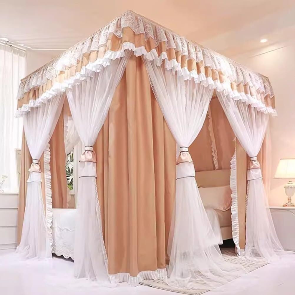 Add a touch of romance and elegance to your bedroom with this Khaki White Double Decker Mosquito Net. Designed to transform your space into a luxurious retreat, this bed canopy features a stunning ruffle edge design, perfect for creating a dreamy princess room or an elegant living space. Ideal for both single and double beds, the mosquito net’s double-layer yarn construction provides excellent shading, ensuring that you can sleep soundly and peacefully, free from distractions or insects.Made from 100% polyester, the net is both soft and breathable, allowing for proper air circulation while keeping mosquitoes and other bugs at bay. Whether you’re using it for privacy, a peaceful sleep, or as a decorative piece, the net offers an airy and charming addition to any room. The included metal bracket and three-door design ensure easy access and a stable installation, so you can set up your new bed canopy effortlessly.Perfect for creating an intimate and private space, this mosquito net is great for kids who share rooms, daytime sleepers, or anyone seeking a cozy, personal retreat. You can also enhance the look by adding fairy lights or dream catchers for a magical ambiance. Available in various sizes to fit your bed perfectly, this double-decker mosquito net is not only a practical solution for insect protection but also a beautiful, decorative addition to your home.