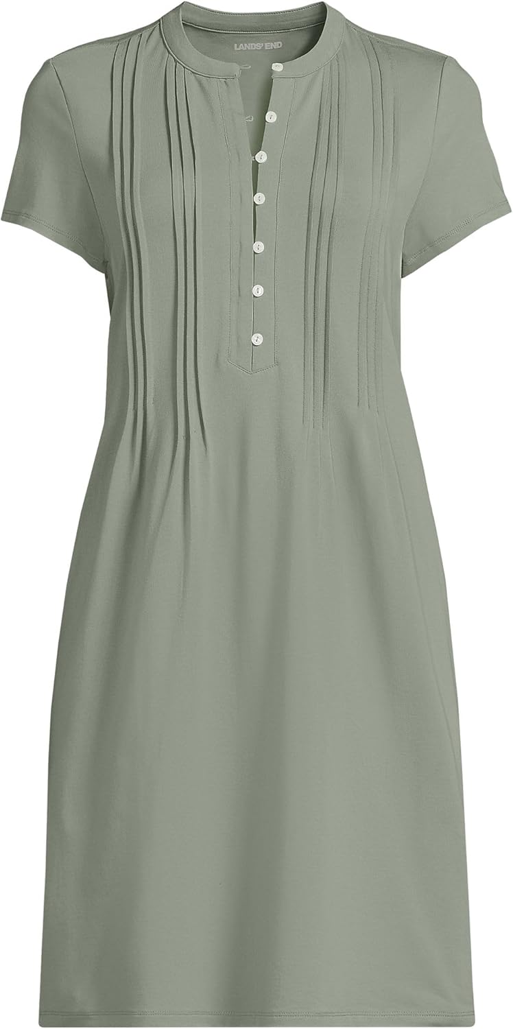 Inspired by your favorite pintuck top, this short sleeve pintuck dress brings effortless polish to your daily lineup. Designed in a knee-length A-line silhouette, it flatters with soft pleats and a relaxed, easy fit. The functional button placket with elastic buttonhole loops adds comfort and charm, while on-seam pockets make it as practical as it is pretty. Made in a comfortable cotton/modal blend, it’s your throw-on-and-go dress, perfected.