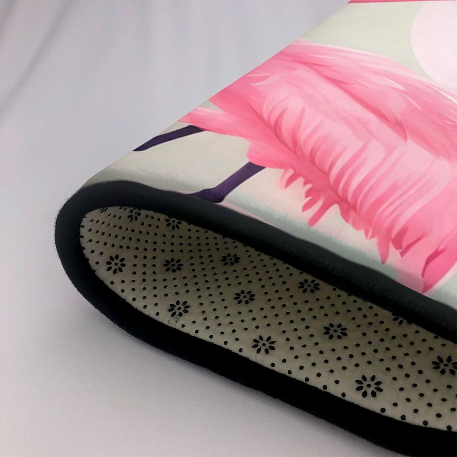 Choose our Love Flamingo printed decorative carpet to bring meticulous care to your family. Made of high-specification polyester flannel, the pile is fine and dense, not easy to pilling and fading, and it will accompany you longer. The memory foam middle layer is like a caring friend, dynamically adjusting the foot pressure, relieving fatigue, and making your every step full of comfort. The non-slip bottom design is like a loyal guardian, silently protecting the safety of you and your family, especially suitable for families with elderly and children. Easy to clean, can be washed by water or machine, saving time and effort. Exquisite cutting and sewing technology ensures that the edge of the carpet is flat and burr-free, and the truth is in the details. Whether it is a bathroom, bedroom or office, it can add a touch of warmth and peace of mind to your life.
