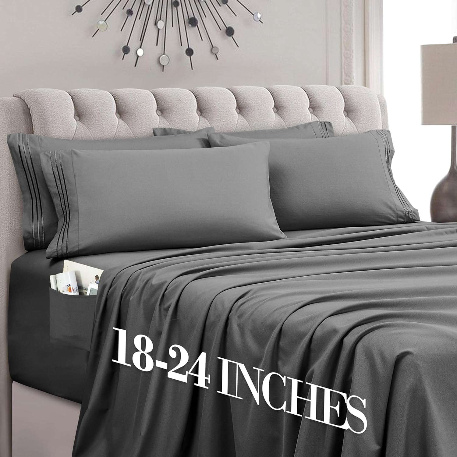 | Theme | Bed Essential, Embroidered, Extra Deep Pockets, Storage Pockets, Ultra Soft |