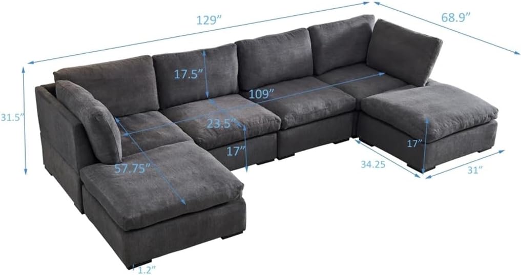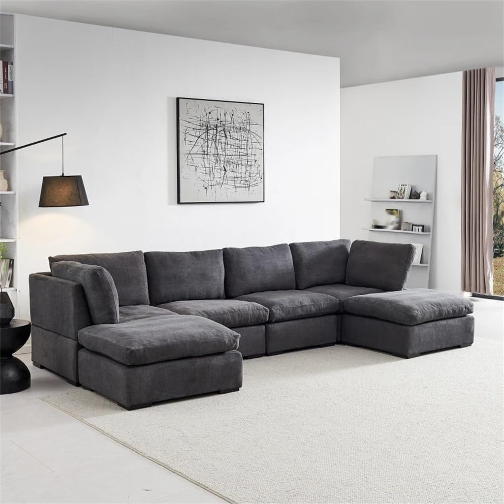 Each seat of the modular sofa can be moved freely or fixed with screws from the bottom,so that it can be meet with your different needs.The sofa frame is made of solid wood, springs, and high elasticity sponge, making it not too hard and elastic for you to sit on. In addition, the soft and skin friendly fabric and down filling cushion make you feel very comfortable.The sofa fabric is polyester, with a soft and skin friendly texture, and the sofa legs are solid wood.Seat cushion is filled with down and polyester, providing a very comfortable sitting experience. Sitting on them after a tiring day will make you feel incredibly relaxed. Whether for leisure or relaxation, this sofa is a choice.Assembly is needed. All the tools are included which is hidden in the bottom of each seatUpholstery Material Component PolyesterSeat Cushion Fill Material Down+PolyesterBack Cushion Fill Material PolyesterFrame Material Solid Wood+Plywood+SpringWood species EucalyptusLeg Material Solid Wood(Rubber wood)Products included1*Modular Sofa(no other presentation items included).Notice:1. Due to manual measurement, please allow 2-3% error, before you bid, please make sure you don't mind.2. The color may vary due to different displays, please refer to the actual product.2. Due to the manual measurement, please allow a 1-3 cm difference......
