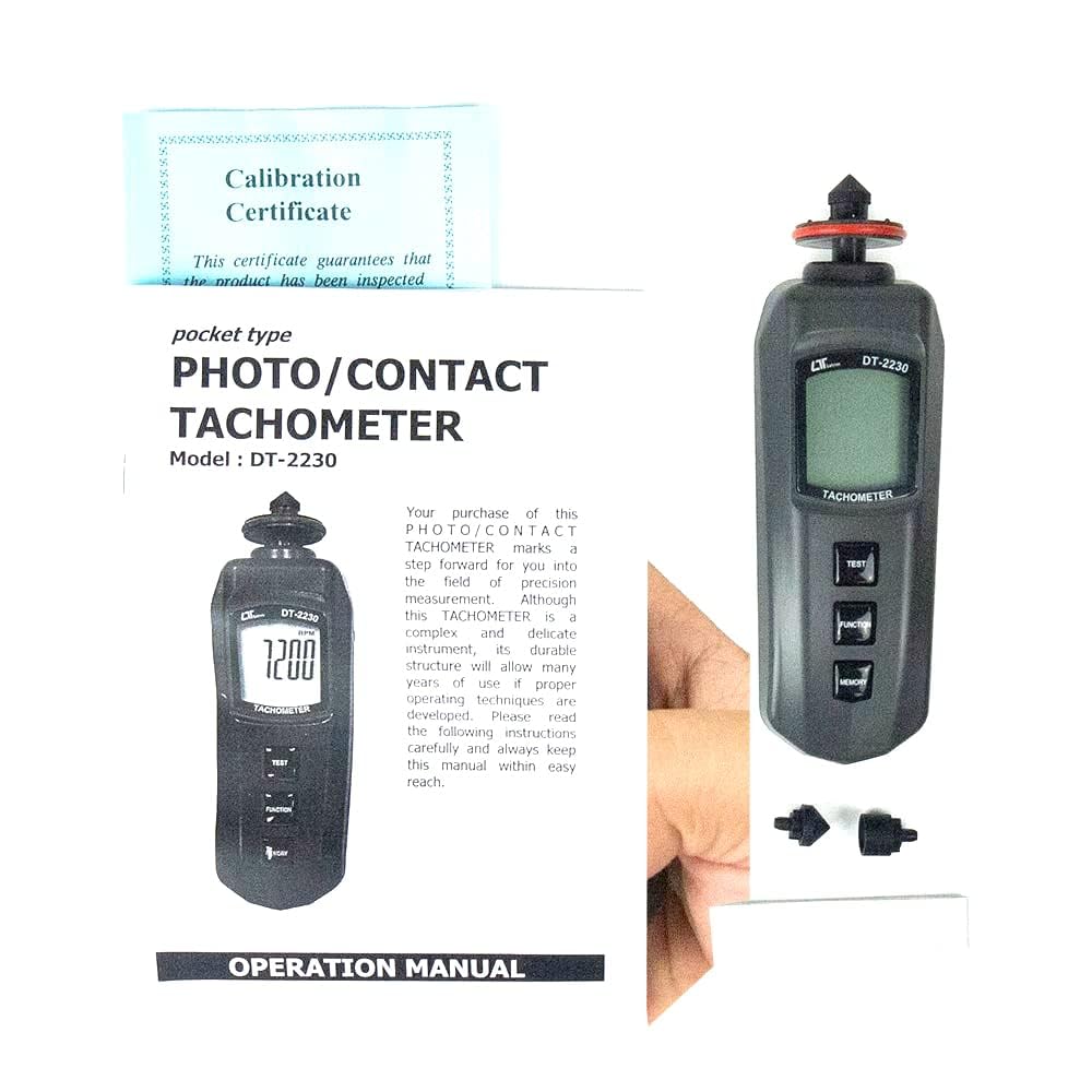 The best Tachometer in the world. 2 in 1 combine Photo tachometer and Contact Tachometer. Photo tachometer uses Laser light detecting source,long measuring range up to 1.5 meters,speed measuring meter. It is useful in the RPM measurement application where the machine would be a risk to the operator or close access is difficult or not possible. Industrial