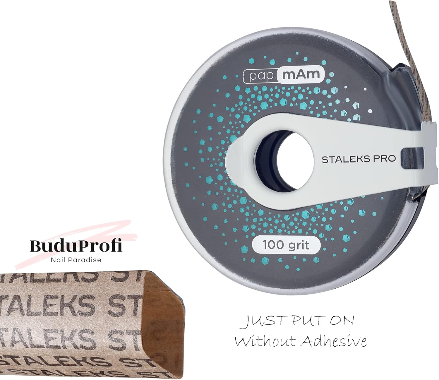 The exclusive series allows you to measure the required length by itself. High-quality and long-lasting Swiss premium sanding belt. The nail file sheets are attached to the base without sticking and completely cover all sides and the end. This attachment principle protects the customer from possible cuts and allows the master to work safely. The interchangeable blades sit firmly on the base and do not slip when working. The base remains without adhesive residue after removal.
