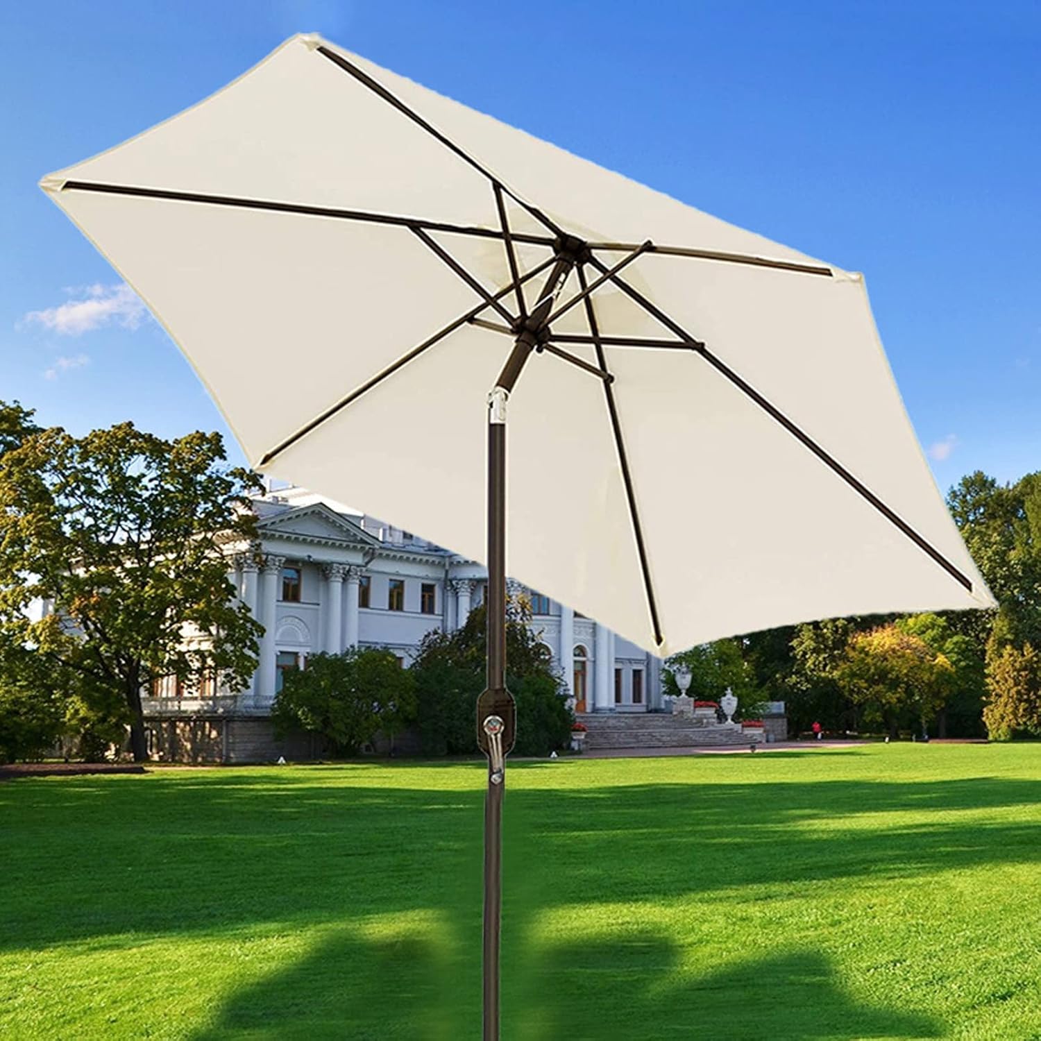 Patio Umbrella Outdoor Table Umbrella with Crank 8 Ribs for Patio Backyard Lawn Garden Outdoor Activities, Portable Sun Shade Umbrella Product Description: Name: Iron Elbow Central Column Umbrella Umbrella fabric: 200g㎡polyester fabric coating Frame material: iron frame with antis-rust treatment Function: sunshade, waterproof, windproof Opening methode: hand crank bearing open Color: red, green, white, gray Umbrella: 8 bones Weight: 6KG Size: 270cm*245cm (106inch*96inch) Each product is shot in real scene, there may be some visual deviation due to light and other reasons. The elbow umbrella does not include the base The umbrella surface of the sunshade is made of polyester, and the rainproof ability is limited to light rain. The parasol is waterproof, rust-proof, non-fading, easy to clean and maintain.