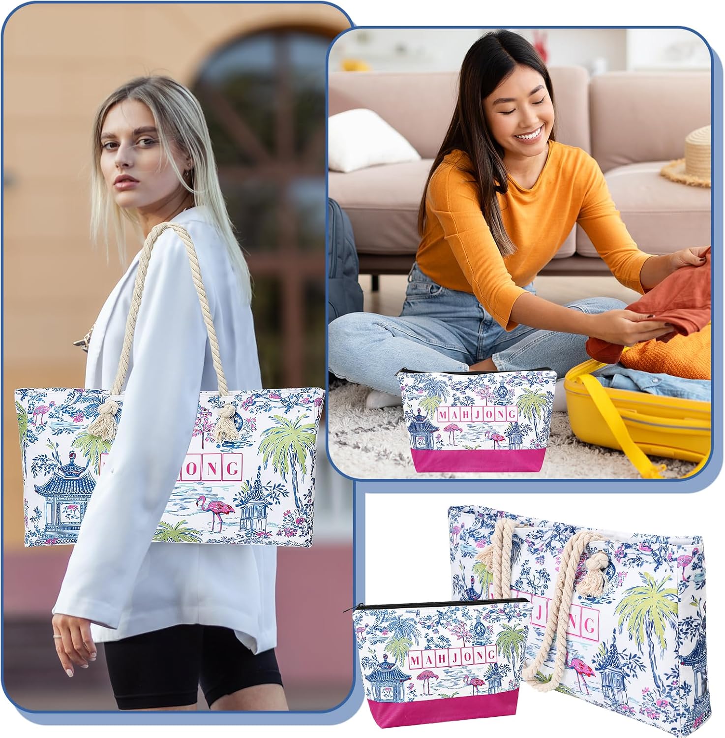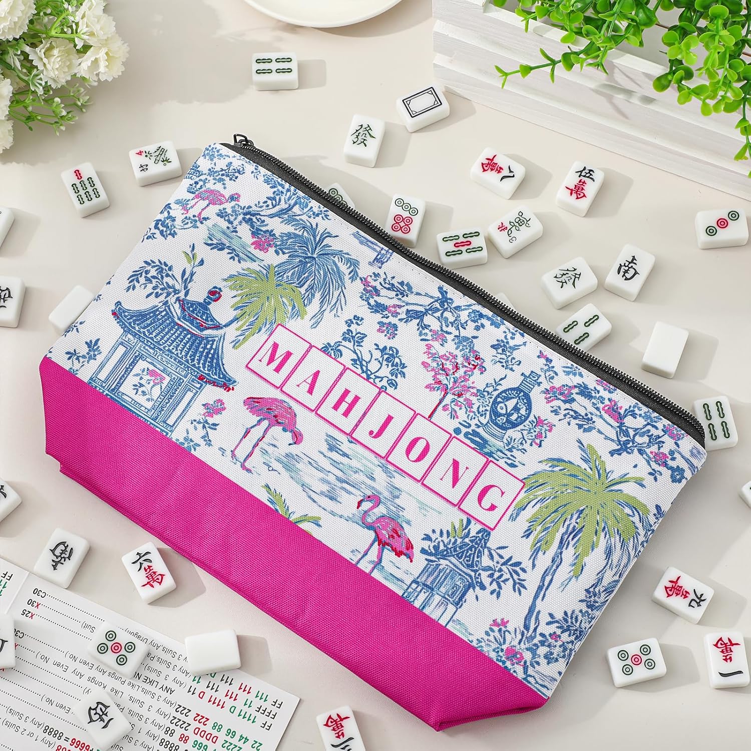 Features: Delicate design: Features pavilion, flamingo, coconut trees and other elements and the word of ‘MAHJONG’, classic and delicate. Practical usage: Great for both daily and party use, a complete set with decorative nature to hold your American mahjong tiles. Specifications: Material: polyester Size: details in the picture Package includes: 1 x Mahjong Set Bag 1 x Mahjong Tiles Bag 1 x Mahjong Racks Bag