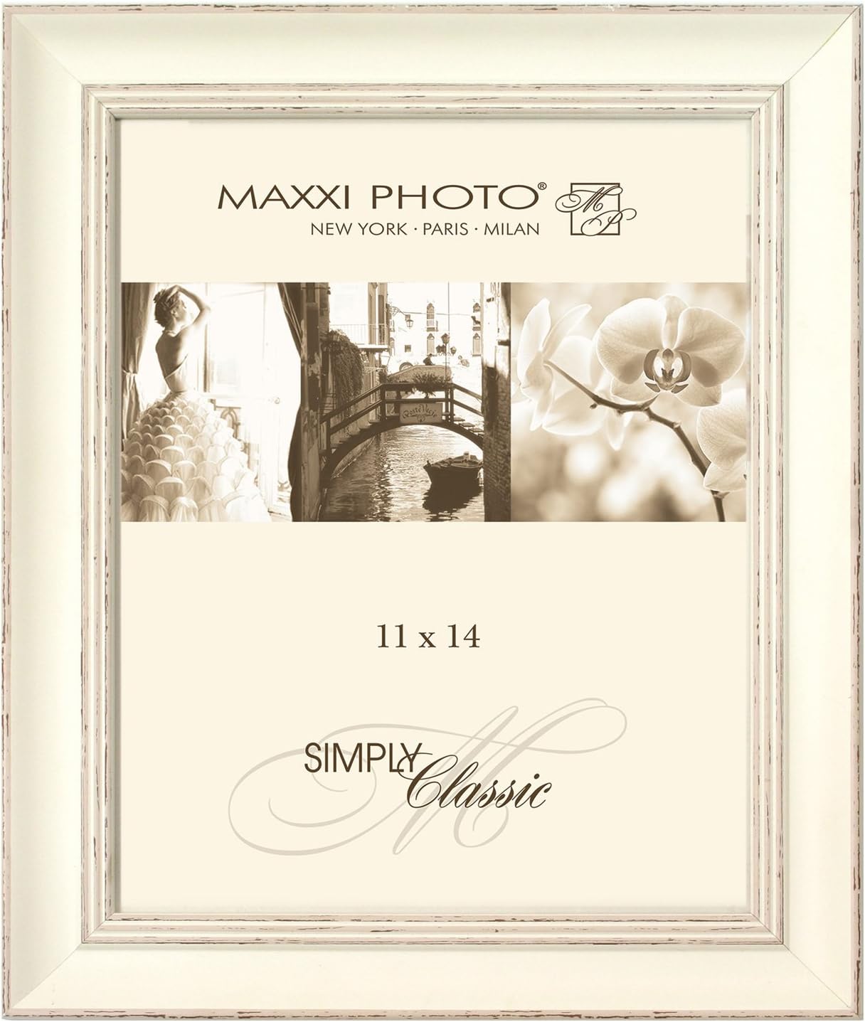 Maxxi Photo 8"x10" Sage green Verona photo frame W/ easel back photo frame W/easel back. Featuring soft pastel colors in traditional classic profile, the Verona frame collection with its subtle distressed white lines along the frame's inner and outer borders add an old Italian country charming feel to any room or decor.