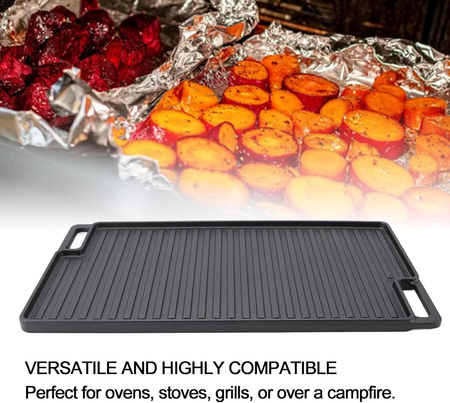 Item Type: Reversible Grill GriddleMaterial: Cast IronWeight: Approx. 4330.00g / 152.74ozProduct Size: Approx. 46x26x1.5cm / 18.1x10.2x0.6inPackage List:1 x Cast Iron Reversible Grill Griddle