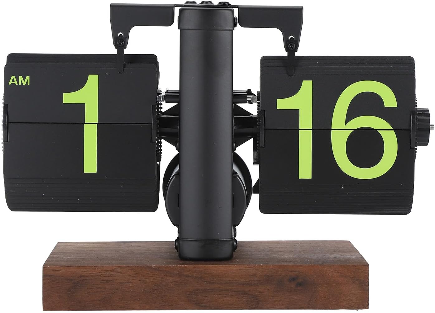 Spec:Item Type: Digital Flip ClockMaterial: 304 Stainless Steel, PVC, Black WalnutWeight: Approx. 706g / 24.9ozHeight: 14.3cm / 5.6inBase Size: Approx. 15x8cm / 5.9x3.1inTime: 12 HoursBattery (Excluded): 1 x D Battery, Carbon BatteryWhether Double Sided: Single SidedDisplay Type: NumbersWaterproof: NoPower Type: BatteryMovement Type: ElectronicSuitable Places: Living Room, Bedroom, Study, Outdoor, Bathroom, Entrance, Balcony, Commercial PlacesHow to Use:Install the battery to drive and usePackage List:1 x Flip Clock1 x Instruction ManualNote:1. Carbon batteries are recommended. Alkaline battery current output is relatively large, will affect the service life of the product movement and the accuracy of timekeeping, so it is recommended that parents use carbon batteries! (Do not use rechargeable batteries and other current output is relatively large batteries, the use of ordinary batteries)2. Not toggle the hour page, only in the minute page for time adjustment. Note: Adjustment time needs to be adjusted 1 minute before (because the battery is put into a minute before the internal current is fully generated)3. Adjust the time of the toggle, from back to front direction toggle, can not be pulled in the opposite direction.4. The red circle marked place please do not feel f ree to use your hands toggle, otherwise it will affect the accuracy of the clock time;5. As the page is made of soft material, the page may fall off due to the fall and shock during transportation, the page can be uninstalled and installed.
