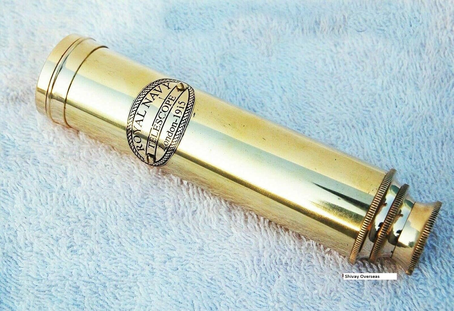 Made With Brass Spy Glass Telescope is a great gift for a nautical navigator in your family. The spy glass measures 12 inch when its four brass tubes, which are clear coated to protect the brass from tarnishing, are fully extended.This spy glass also comes with a solid brass cap to protect the lens.Simply push the eyepiece in or out to bring the image into clear focus. Clear views will come to you finally if you slightly operate to change the barlow length, always remember to pull or push the barlow bit by bit to get the best result. Perfect for birds watching hunting,hiking,also great for kids to realize their captain’s dream and explore the world.