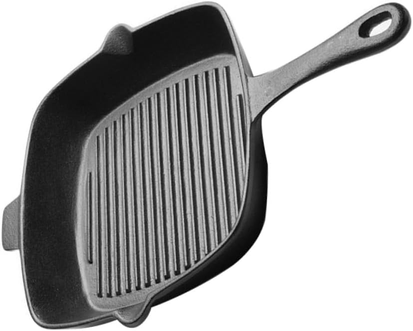 Package List 1 x 26cm Cast Iron Square Grill Pan Non Stick Steak Frying Pan for Electric or Gas Stove Tops (Black) Characteristics - Size: 26 x 5cm (LxWxH) frying pan. - Material: Cast iron square grill pan. - Color: Black. - Superior heat retention and even cooking grill pan. - This portable grilling pan is small enough to easily from cooktop to oven and heats evenly over any flame - try it with gas or electric stove tops or on your next camping trip, and skip the butter or oils and use medium high heat for smokeless cooking results steak pan. - Ribbed bottom for low- cooking steak pan cast iron. - This cast iron grill pan is flat for efficient warming, yet deep enough to keep food from splattering, and creates on steak or large vegetable slices restaurant meal. Easy to clean and lasts forever with proper care - simply hand wash with gentle and warm water, and dry thoroughly. - Use on all cooking surfaces, grills, campfires and oven. Suitable cooking appliance.Goods Descriptionsteak pan non stick cast iron grill pan for stovetop lets you enjoy healthy delicious grilled vegetables and meat chicken or fish classic barbecue taste.frying pan A practical and lightweight alternative to bulky outdoor appliances or electric indoor griddle grills.grill pan Use with utensils that are safe for nonstick cookware to prevent scratching on pans top.steak pan cast iron Nonstick surface without added oil fats or synthetic coating - the grilling pan gets better and more flavorful with use over time, and will last for with proper care