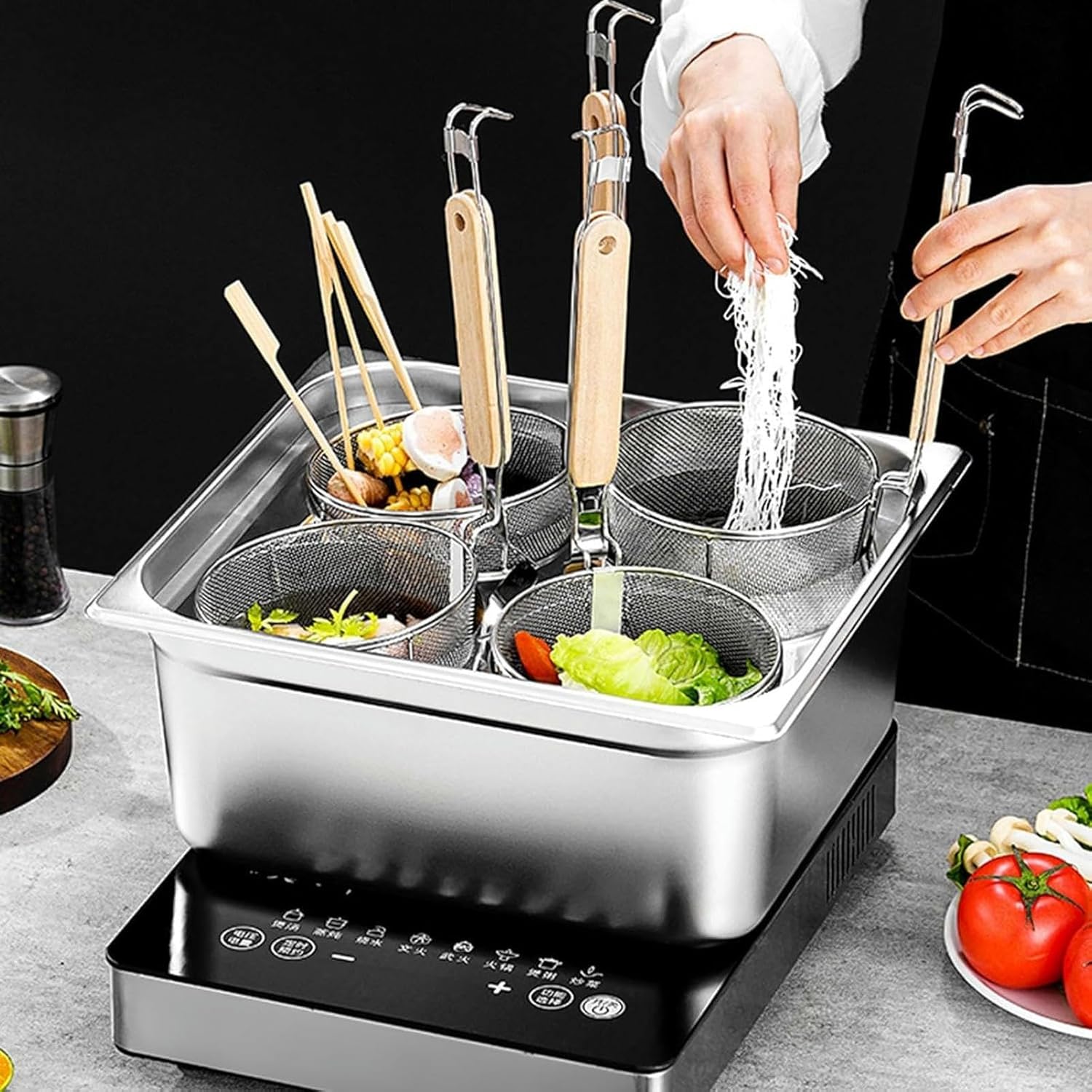 SpecificationsName: Pasta Cooker Insert SetMaterial: 201 Stainless SteelSize:4 Hole Pasta Cooker Pot Size: 35x32.5x15cm/13.77x12.79x5.9inchInsert Strainer Basket Size: 13.8x23cm/5.43x9.05inchSuitable: Induction Cooktop, Gas, Electric, Ceramic CooktopsPackage List:1 x Pasta Cooker Pot4 x Insert Strainer Basket