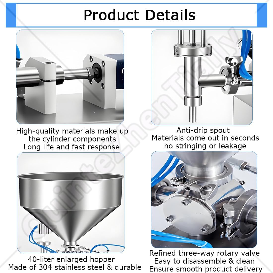 Are you still worried about slow and inaccurate paste filling? Our pneumatic paste filling machine offers ±0.5% filling accuracy, adjustable speed and excellent sealing performance. 【Features】: - High filling accuracy, drip-free operation. - Adjustable volume and filling speed. - Excellent sealing performance and stable air pressure. 【Specifications】: Name: Pneumatic Paste Filling Machine Material: stainless steel. Filling range: 30-300ml, 50-500ml, 100-1000ml (optional) Filling speed: 1-25 bottles/min Air pressure: 0.4-0.9MPa Air consumption: 0.1 m³/min Filling accuracy: ±0.5% Dimensions: 76 x 22 x 102 cm. 【Package Contents】: 1 x Automatic Filler. 1 x hopper (shipped in two packs) This machine is pneumatic; you need to bring your own air pump. If you have any questions, please feel free to contact us. We will serve you in 24 hours.