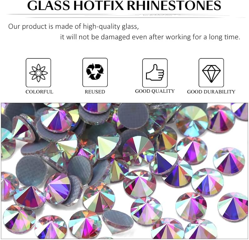 is_customized: NoStyle: flatbackTechnics: Hot-FixMaterial: glassUse: Bags,Garment,ShoesShape: RoundColor: Crystal AB/Clear/BlackTechnics: Hotfix/Iron onSize: SS10/SS16/SS20/SS30Size2: 2.8mm/4mm/4.8mm/6.5mmUse: Clothes/Dress/Skirt/Shoes/Bags/Garment