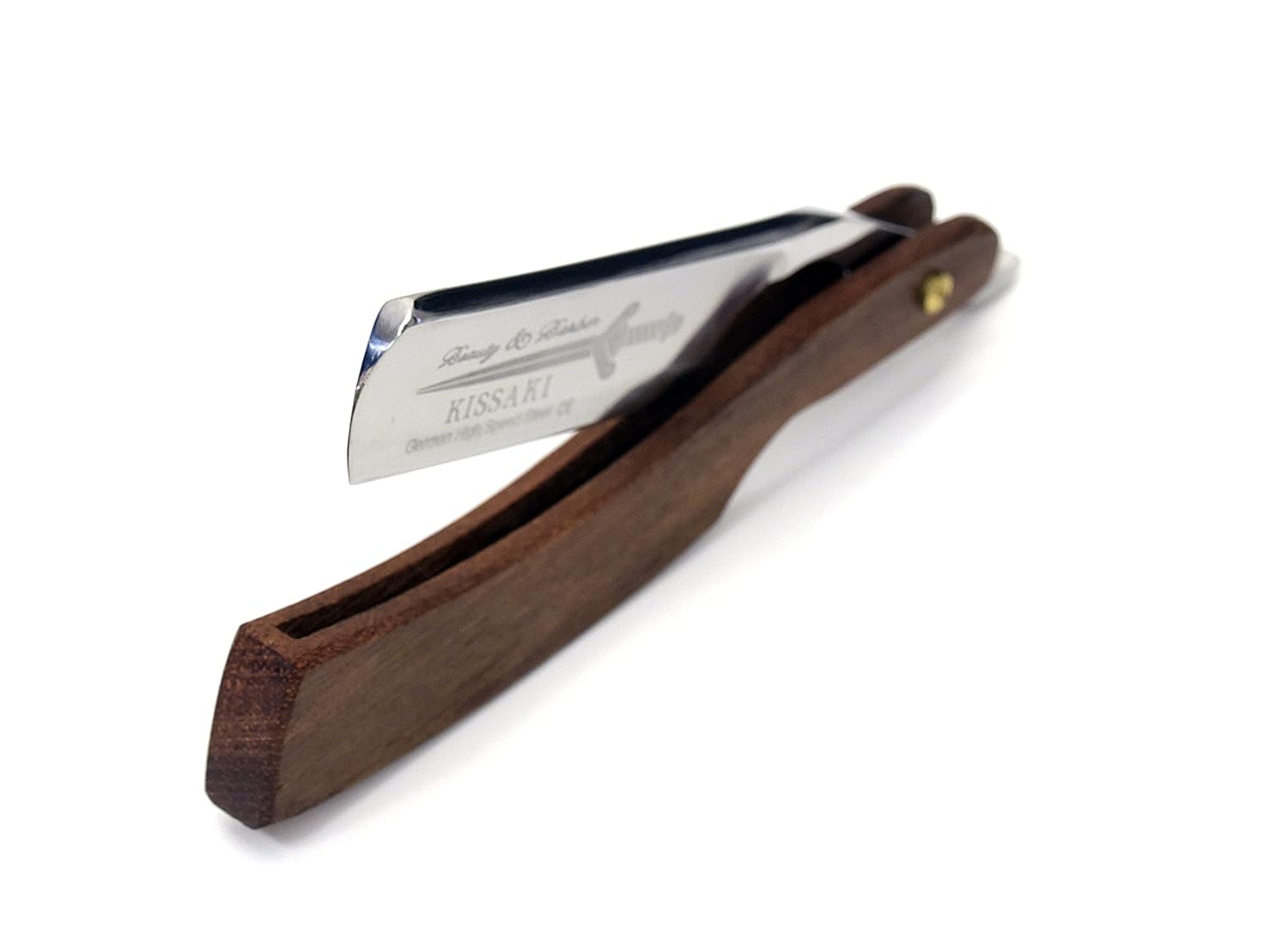 STRAIGHT RAZOR, NATURAL WALNUT WOOD HANDLE RAZOR PROFESSIONAL FOR MEN & BARBERS BY BEAUTY & BARBER KISSAKI 【German high-Speed Steel】 Handmade with ultra-sharp German high speed steel cutting core at HRC58-60 hardness. This Kissaki straight razor comes with unrivaled performance and incredible edge retention; cobalt added high speed steel outperforms carbon steel in durability and is easier to sharpen as cobalt enhances the other alloying elements. 【ERGONOMIC & WELL-BALANCED】 6'' and full hollow blade is light weight and compliments the wood handle in maintaining balance. 【ULTIMATELY DURABLE HANDLE】 The meticulously constructed natural walnut wood handle is extremely impervious to heat, moisture, cold with military grade strength and life-long sturdiness. 【SUPERIOR SHARPNESS】 Ruthlessly sharp shave ready edge is handcrafted by seasoned artisans to a mirror polish at 5-8° per side using the traditional 6-step honing method. 【LIFETIME WARRANTY】 No premium straight razor is complete without a lifetime warranty; our masterpiece razor is fully covered for life, free exchange or return for life if the item is defective. Why Choose KISSAKI? ✓Shave ready, on 20k Whetstone . ✓German high-speed steel. The ultimate steel for the ultimate performance. ✓This immaculate razor is sharpened under the ancient 6-step honing method. ✓longer lasting than carbon steel. This elegant razor is perfect for the novice just getting his feet wet as well as the expert looking for a great addition to his den. The blade is 7/8" which is great for general beard growth removal. The full hollow grind and High speed steel is often preferred for its audible feedback. You can hear the blade "sing" as you are getting a shave. Sharpening Sequence: 300 Grit whetstone 1000 Grit Whetstone 6000 Grit Whetstone 14000 Grit Whetstone 20000 Grit Whetstone Razor Miester Combination Fire hose & Leather Strop .