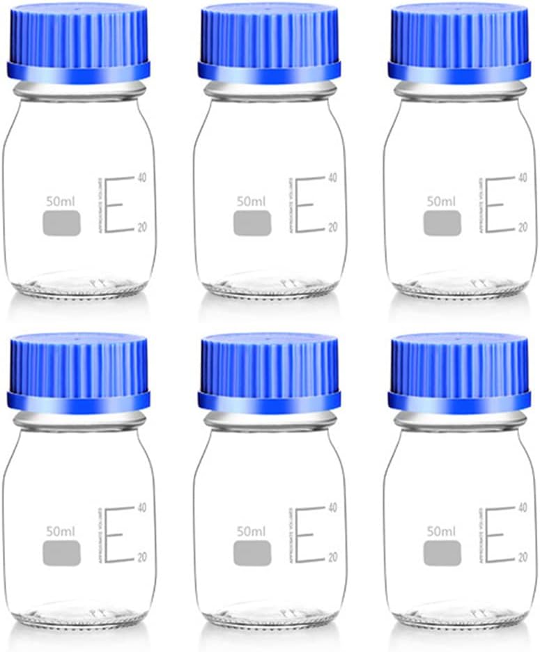 EASE TO USEThe round storage bottles are made of glass material, printed with clear scales, which can help you observe easily and clearly, providing you with more convenience.WIDE RANGE OF APPLICATIONGlass bottles are suitable for laboratory storage of reagents, and also suitable for home use. They can store all kinds of liquids, powders, small solids, food, spices, tablets, etc.
