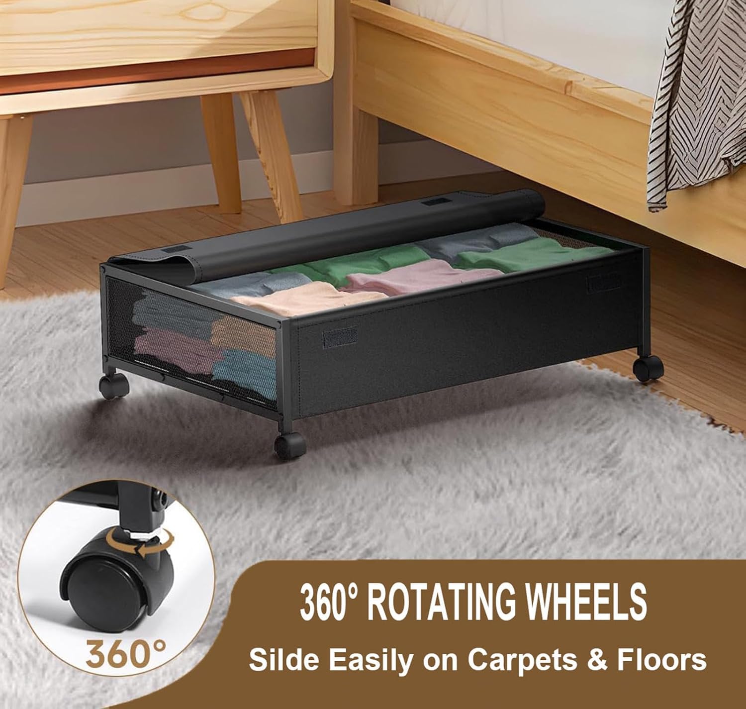 The under bed storage keeps everything dust-free and conveniently within reach, making your room look and feel more organized and serene.In addition to the bedroom, you can use the storage to organize your clutter in any scenario in your home.product features:☛Metal StructureCompared to other materials, metal construction is stronger and has better load-bearing capacity.☛Transparent dust coverSee-through cover to keep dust off of contents but still be able to see what’s inside☛360° rotating wheelsThe under bed storage container rolls easily, even on the rug. It has made it so easy to stash the toys out of sight and easily roll them out when you want them.Product material: Metal+fabricSize: 62*42*18cm/24.4*16.5*7.3 inchesProduct packaging includes:under-bed storage containers*1Feature of product:Suitable for use in attics, basements, closets, closets, bedrooms, cribs, under cribs and dormitories,Protect and store seasonal and everyday items, holiday decorations and keepsakes.Please note:The dimensions are all measured manually, there may be slight errors, which will not affect normal use.