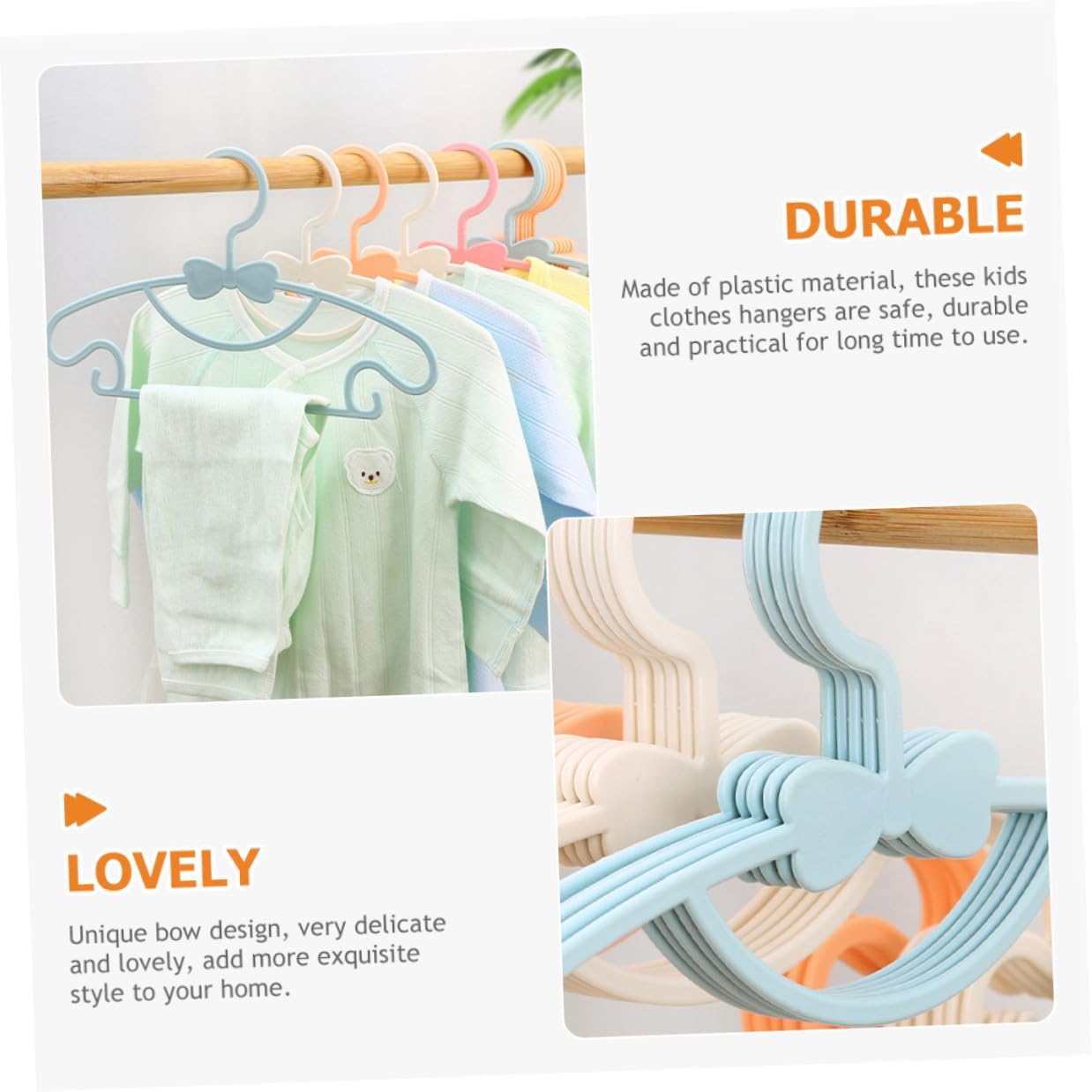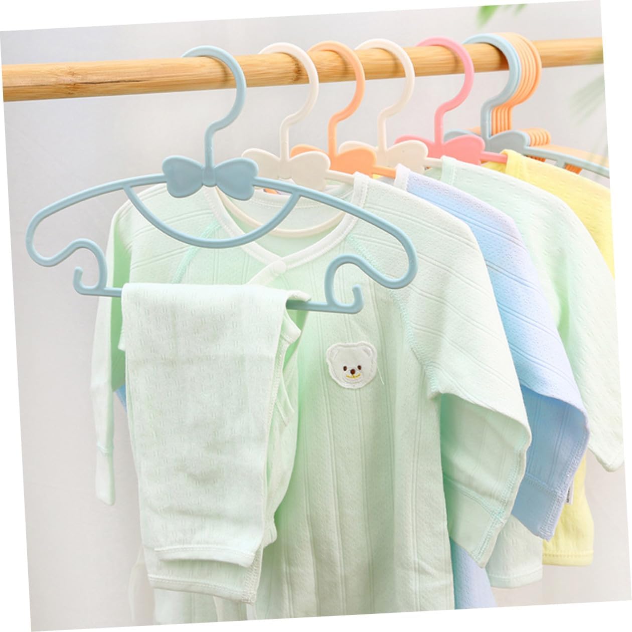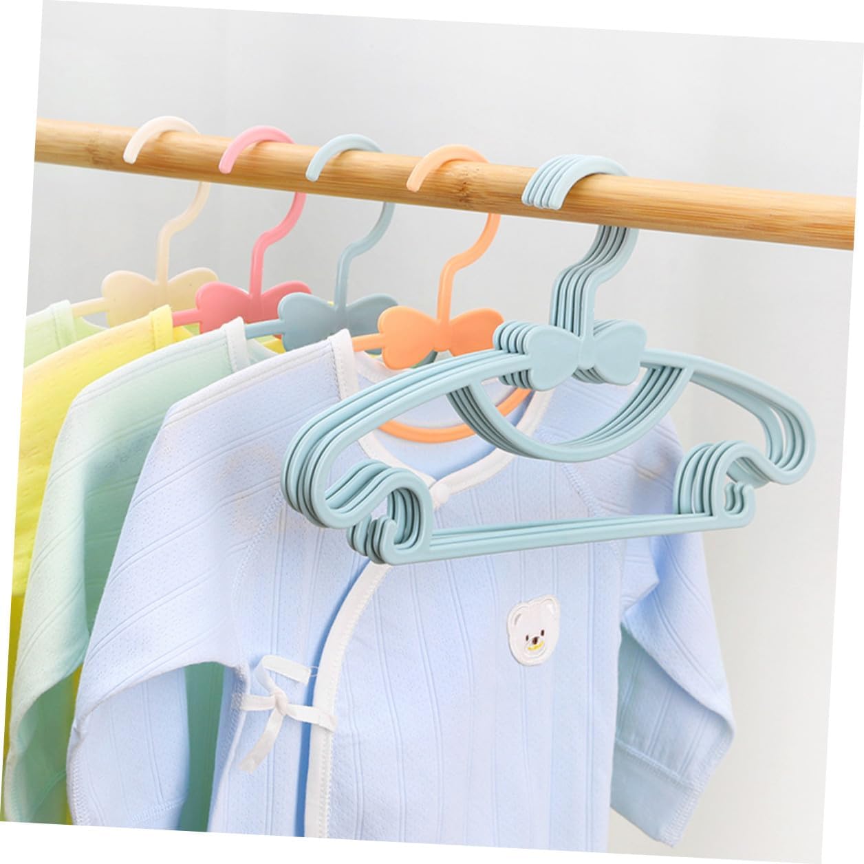 Package List 100 hangers Features - Material: Plastic. - Size: 27.00X17.00X0.50cm/10.61X6.68X0.20inch. -Product Info: Clothes Rack - Color: Random color. - The good polishing process makes this hanger smooth and burr-free, you can use rest assured coat hangers. - Scientific structure, reasonable arc design, your clothes are not easy to skid off nursery hangers. - Widely applied to suspend skirts, coats, pants, etc, bring you much more convenience hangers. - Unique bow design, very delicate and lovely, add more style to your home newborn clothes hangers. - Made of plastic materials, these clothes hangers are firm and , with strong bearing and use.Goods Description hanger Unique bow design, very delicate, practical and decorative, more convenient, not damaging your clothes.newborn hangers Scientific design, strong bearing and high impact, can suspend most ' clothes. clothes hangers Made of plastic material, these clothes hangers are safe, and practical for long time to use