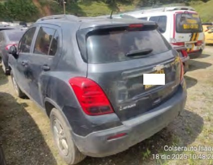 En caso que el bien presente deudas por comparendos, impuestos, multas, vinculación con empresas transportadoras, etc, o que el mismo tenga la revisión técnico mecánica y/o SOAT vencidos, las mismas deberán ser asumidas por el comprador bajo su propia cuenta y riesgo para el perfeccionamiento del contrato. Los valores aquí presentados corresponden a un aproximado, y en ningún caso se limitará en la responsabilidad de lo que deba asumir por su cuenta. INFORMACIÓN DEL VEHÍCULO: BRP: 000000005071 Modelo: 2016 Marca: CHEVROLET Línea Vehículo: TRACKER FWD LS AT Cilindraje: 1796 Combustible: GASOLINA Parqueadero: Sia Tránsito: STRIA DE TTOyTTE MEDELLIN Fecha SOAT: 02/07/2026 Fecha RTM: 14/06/2026 Impuestos Gobernación: 533500